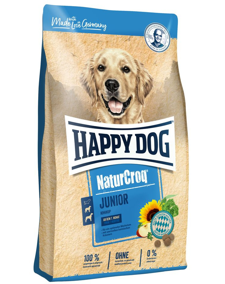 Ab dem 7. Monat sollte das Futter einen moderaten Energie- und Proteingehalt haben, um ein zu schnelles Wachstum zu vermeiden. Happy Dog Natur Croq Junghunde hat daher perfekt angepasste Energie- und Proteingehalte für Junghunde. Ab dem 18. Monat sollte langsam auf ein Happy Dog Adult-Futter, zum Beispiel “Natur Croq Rind&Reis” oder “Natur Croq Active”, umgestellt werden.