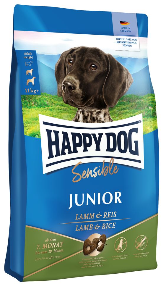 Happy Dog Sensible Junior is optimaal afgestemd op de behoeften van jonge honden en ondersteunt een harmonieuze groei in de jongedierenfase. De gevogeltevrije receptuur met zeer goed verteerbaar lam, licht verteerbare rijst en waardevolle Nieuw-Zeelandse schelp is ook ideaal voor gevoelige fijnproevers. Gebaseerd op het Happy Dog Natural Life Concept® wordt jouw hond van alles voorzien waar zijn organisme in zijn geheel van profiteert, zodat hij onbezorgd aan een lang en gezond hondenleven kan beginnen. Vanaf de 18e levensmaand moet er worden overgestapt op Happy Dog Nieuw-Zeeland of Griekenland of een ander geschikt product uit de Happy Dog Sensible lijn.