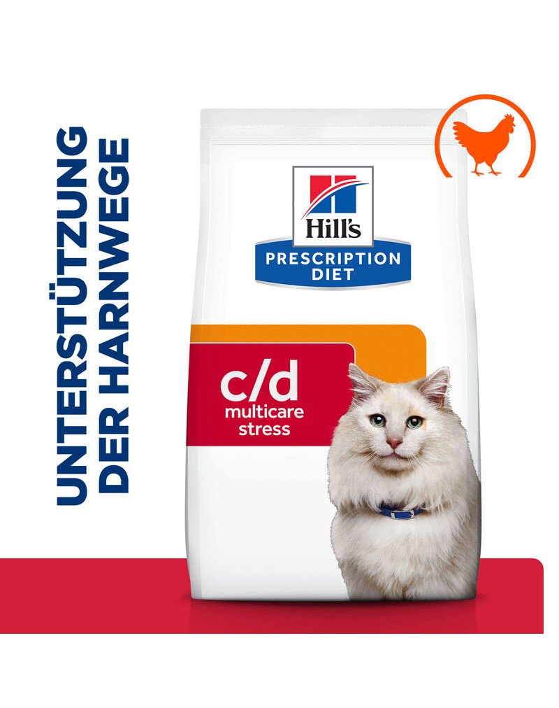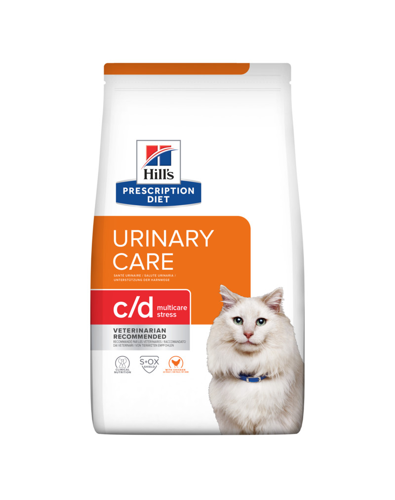 Hill's Prescription Diet c/d Feline Urinary Stress Chicken vermindert klinisch bewezen het heroptreden van FIC-symptomen en bevat ingrediënten ter controle van stress, een bekende risicofactor voor FIC (Feline Idiopathische Cystitis).