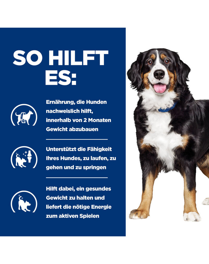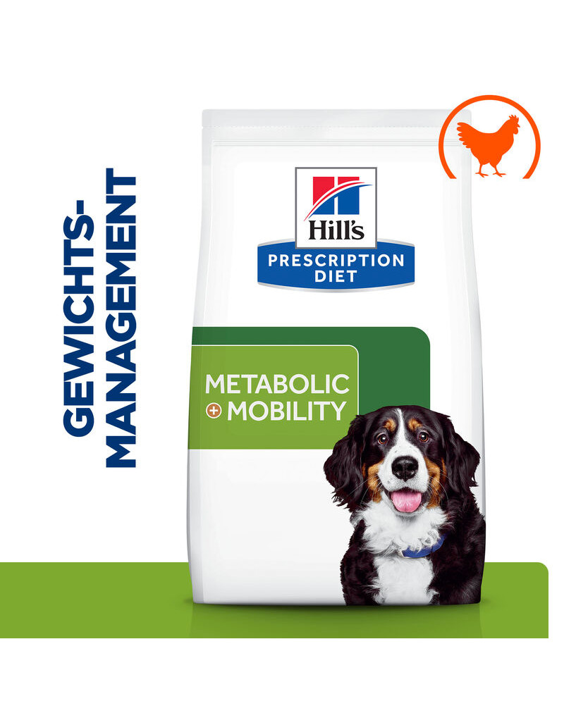 Hill's™ Prescription Diet™ Metabolic + Mobility Canine ist eine Ernährung, die klinisch erwiesen die Beweglichkeit in nur 21 Tagen verbessert UND das Körpergewicht in 60 Tagen um 13% reduziert.