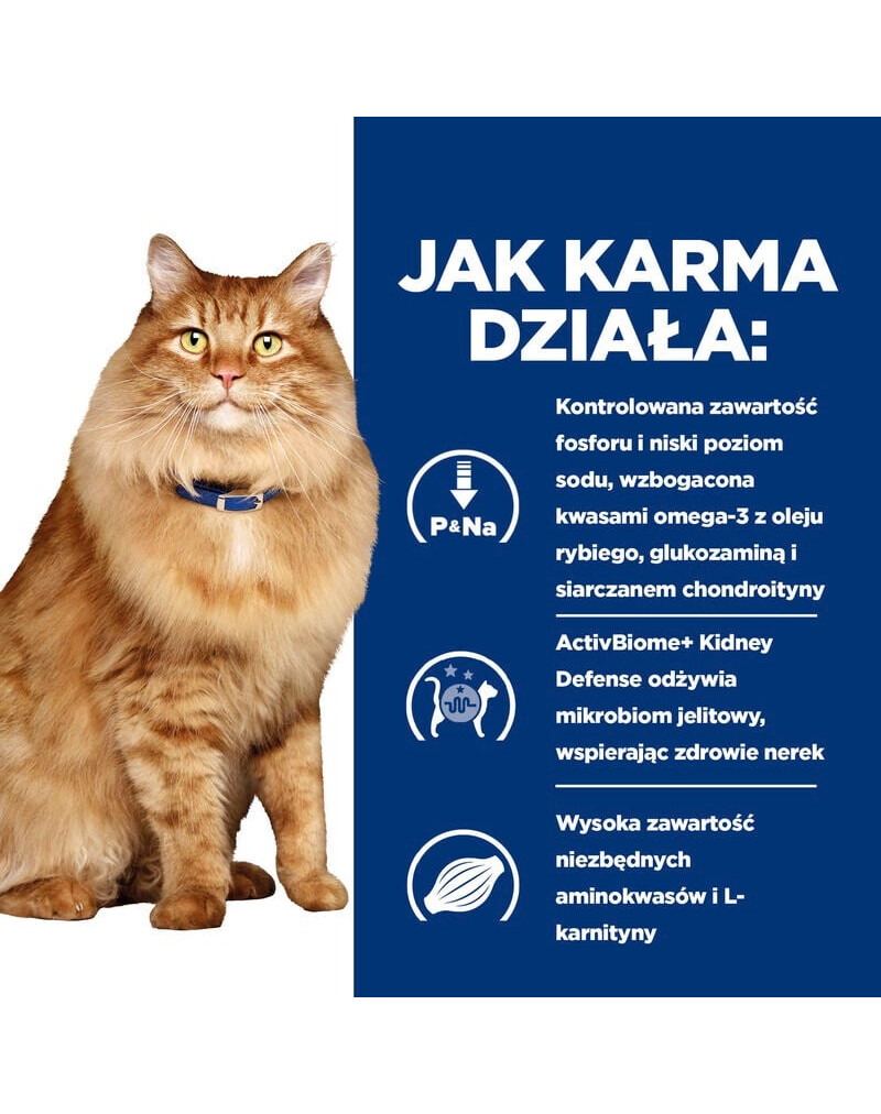 Een dieetvoeding voor de ondersteuning van de nierfunctie bij chronisch of intermitterend nierfalen bij volwassen honden en ter ondersteuning van de gewrichtsstofwisseling bij artrose bij volwassen katten. Dit voer is arm aan fosfor, bevat weinig hoogwaardig eiwit, heeft een hoog gehalte aan DHA en omega-3-vetzuren, een verhoogd gehalte aan methionine en mangaan en een voldoende gehalte aan vitamine E.