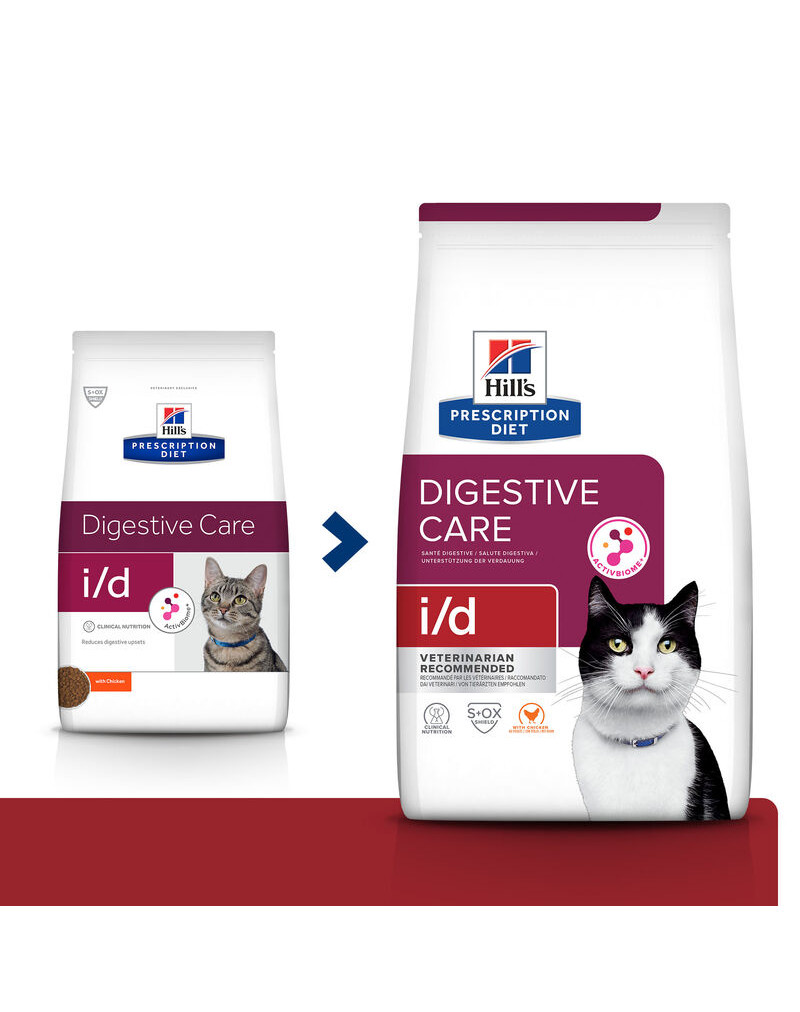 Hill's PRESCRIPTION DIET i/d kattenvoer met kip is een hoogverteerbaar en compleet dieetvoedsel, ontwikkeld om de symptomen van intestinale malabsorptie te verminderen en de effecten van een slechte spijsvertering en exocriene pancreasinsufficiëntie bij honden te compenseren. Dit voer bevat verhoogde hoeveelheden natrium en kalium, evenals hoogverteerbare ingrediënten.