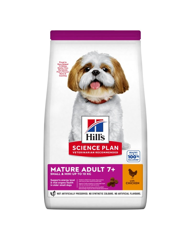 Veel liefde in een klein formaat. HILL'S SCIENCE PLAN Small & Mini Mature Adult 7+ hondenvoer met kip is speciaal ontwikkeld ter ondersteuning van een waardig ouder worden bij kleine en miniatuurhondenrassen. Speciaal geformuleerd met onze kleinste brokjes en een synergetische mix van voedingsstoffen ter ondersteuning van vitaliteit en energie.