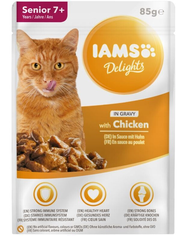 IAMS Delights is een 100% complete en uitgebalanceerde voeding van de hoogste kwaliteit voor volwassen katten.