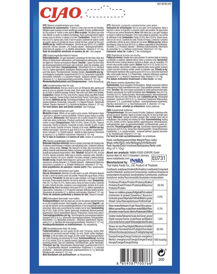 Gemaakt van 100% puur en natuurlijk kippenvlees van vrijlopende kippen en wilde tonijn. Elke verpakking bevat vier afzonderlijke zakjes met lekkernijen om maximale versheid te waarborgen. De verpakking is zo ontworpen dat u uw kat uit de hand kunt voeren, wat uw band nog hechter maakt.