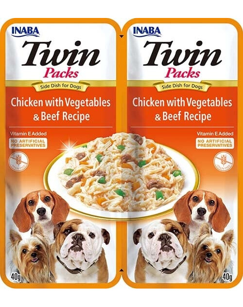 Aanvullend diervoeder voor honden. Formulering met kip, groenten en rundvlees in kippenbouillon.