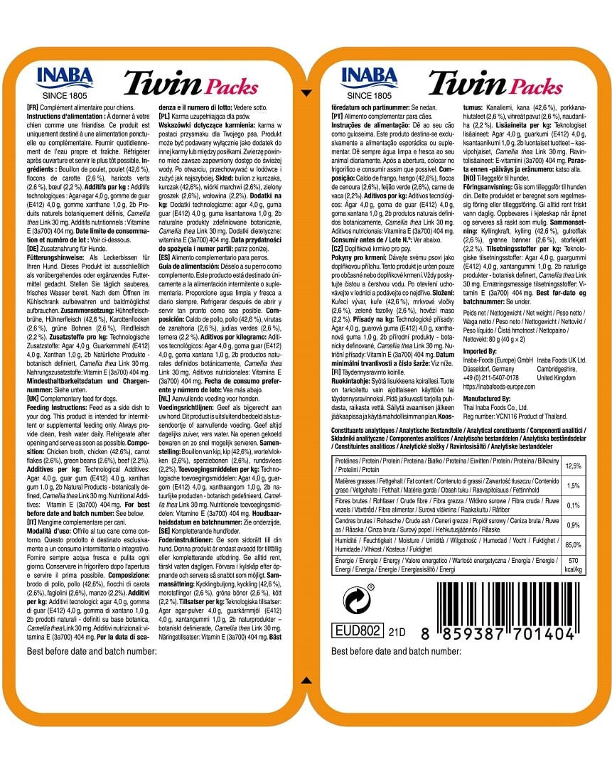 Voedingsadvies: Aanvullend diervoeder in de vorm van een traktatie voor uw hond. Dit product moet alleen als aanvulling op andere voedingsmiddelen of tussen de maaltijden worden gegeven. Zorg ervoor dat uw hond altijd toegang heeft tot een kom met vers water. Bewaar op een droge en koele plaats en bescherm tegen direct zonlicht. Bewaar na opening in de koelkast en consumeer zo snel mogelijk.