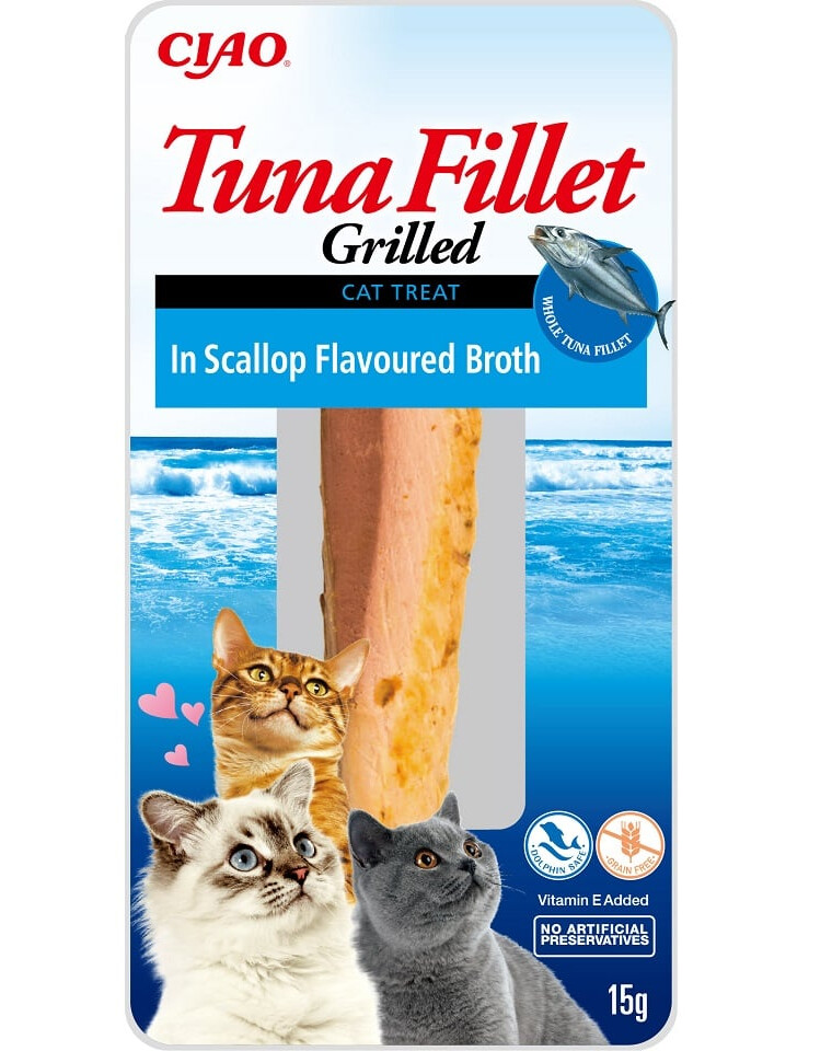 Kattenlekkernij - Inaba Ciao Gegrild tonijnfilet in schelpenbouillon.