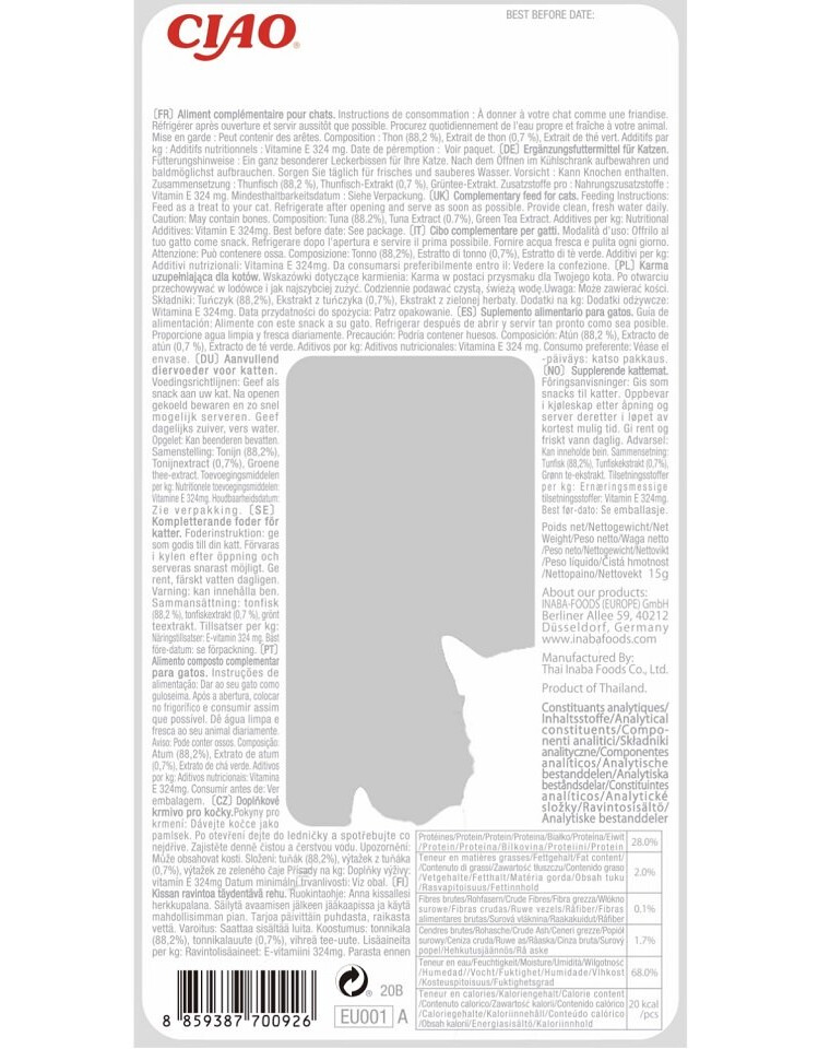 Kattenlekkernij - Inaba Ciao Gegrild Thunfischfilet in Thunfischbrühe.