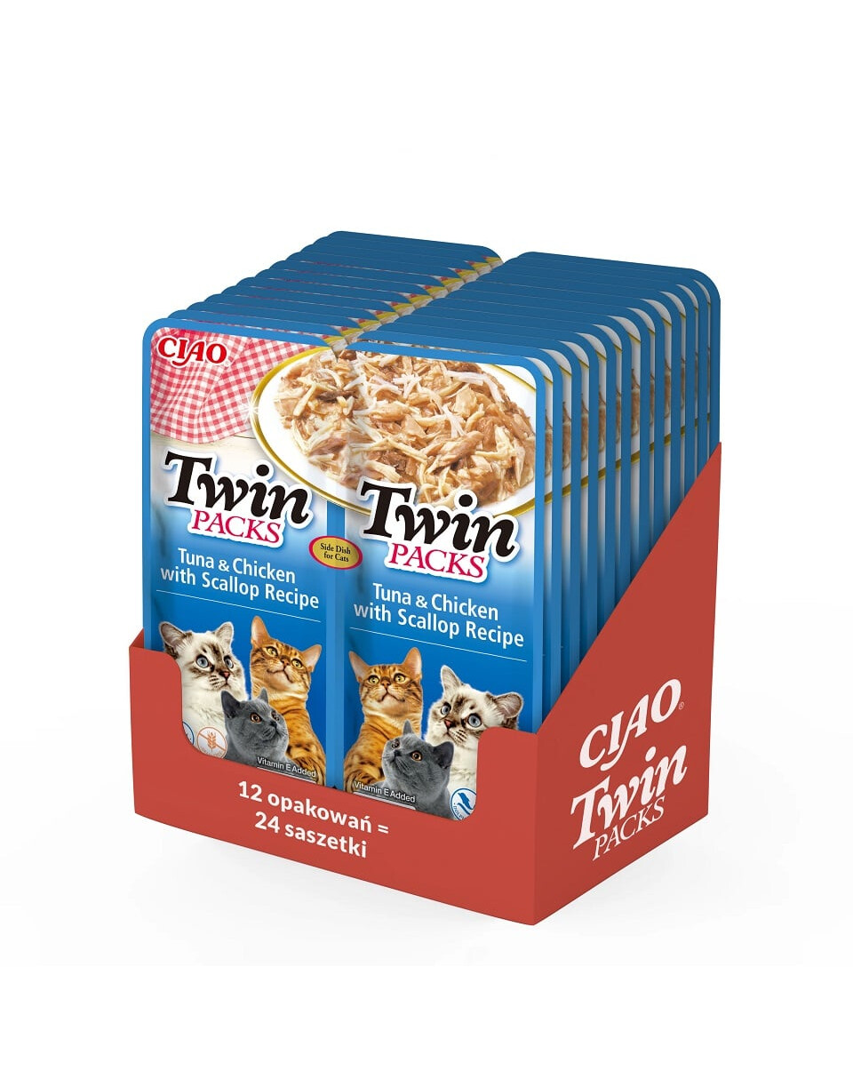 INABA Twin Thunfisch met Kip en Sint-jakobsschelpen in Bouillon voor Katten 24x40 g
