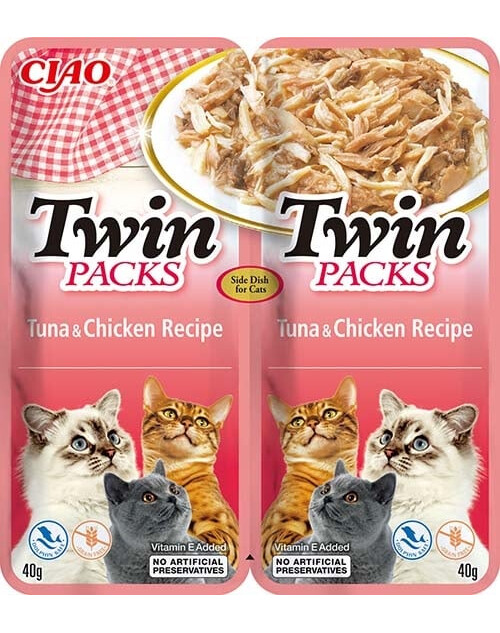 Supplementair voer voor katten. Formule met tonijn en kip in tonijnbouillon.