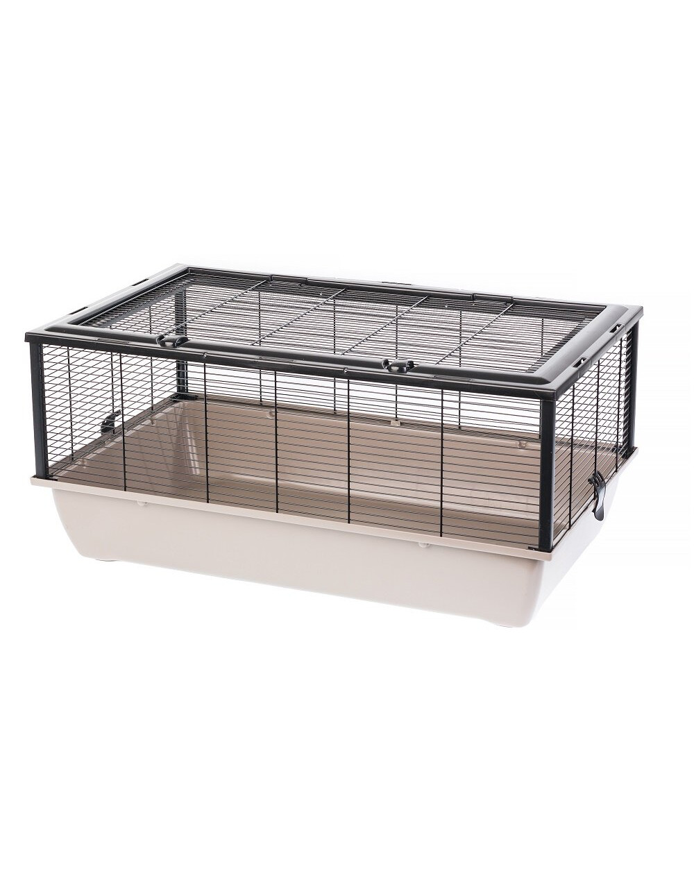 De kooi kan van bovenaf worden geopend en is bovendien met gespen bevestigd, zodat de veiligheid gewaarborgd is en het dier tegelijkertijd gemakkelijk kan worden verwijderd. De breedte tussen de draden is aangepast aan knaagdieren en voorkomt een mogelijke ontsnapping. De diepe kattenbak stelt hen in staat om in het zaagsel te spelen, te graven en tunnels te bouwen, zonder het in de kooi te morsen. De kattenbak is gemakkelijk schoon te maken en te wassen.