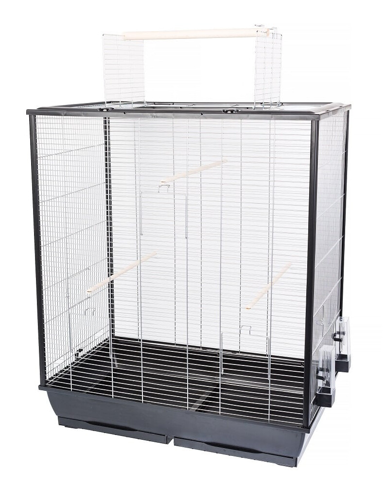 De kooi heeft een diepe kattenbak, waarin de uitwerpselen zich verzamelen. De twee uittrekbare lades maken het eenvoudig om de kattenbak schoon te maken en te wassen. Bovenaan bevindt zich een kooi slot, waarin je bijvoorbeeld snel water of vogelvoer kunt inbrengen. Het gehele dak kan worden geopend om de toegang tot de vogels te vergemakkelijken. De kooi sloten zijn voorzien van drukknoopjes.