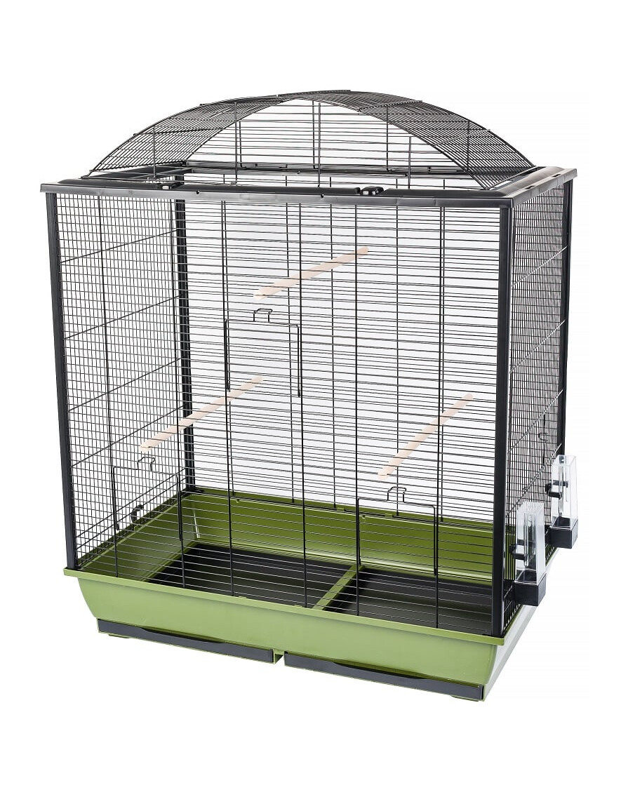 De kooi is uitgerust met 2 grote voerplaatsen en 3 zitstokken, die de vogels de mogelijkheid geven om uit te rusten of te spelen, en die ook als plaats voor het bevestigen van vogel speelgoed of accessoires kunnen worden gebruikt. De plaatsing van de voerplaatsen is zo aangepast dat de vogels optimaal kunnen vliegen en van plaats naar plaats kunnen hoppen.