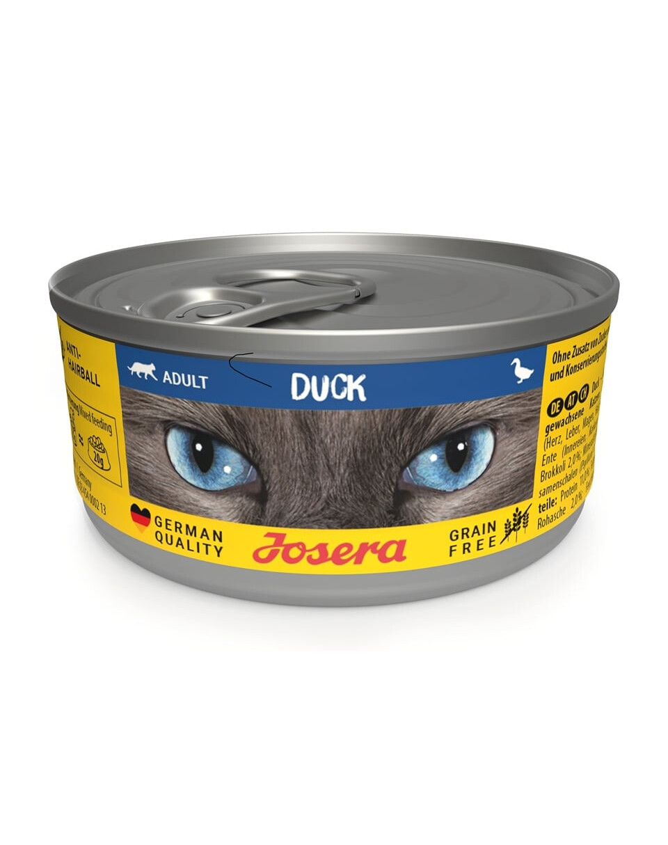 Als je kat graag van zijn maaltijd geniet, maakt dat jou ook tevreden. Daarom is het goed om te zorgen voor afwisselende en smakelijke voeding - bijvoorbeeld door ons nieuwe natvoer Josera Duck in blik te kiezen! De smaak van eend zal zelfs kieskeurige katten verleiden om te eten. Josera Duck natvoer voorziet je kat ook van extra vocht, wat belangrijk is voor katten die niet graag water drinken.