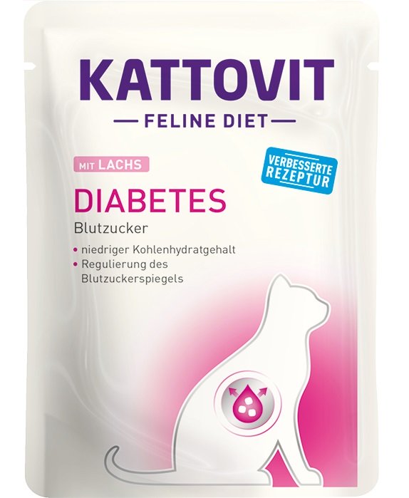 Voor regulering van de glucose-inname (diabetes). Kattovit Feline Diet - DIABETES is speciaal geformuleerd met langketenige koolhydraten voor een gereguleerde glucoseafgifte. Het hoge gehalte aan ruwe vezels (voedingsvezels) in combinatie met een verlaagd vetgehalte kan een stabiliserend effect op de bloedsuikerspiegel hebben. Het voer is verrijkt met L-Carnitine. L-Carnitine kan de afbraak van vetreserves bevorderen. Niet geschikt voor groeiende en drachtige katten. Laag gehalte aan mono- en disacchariden.