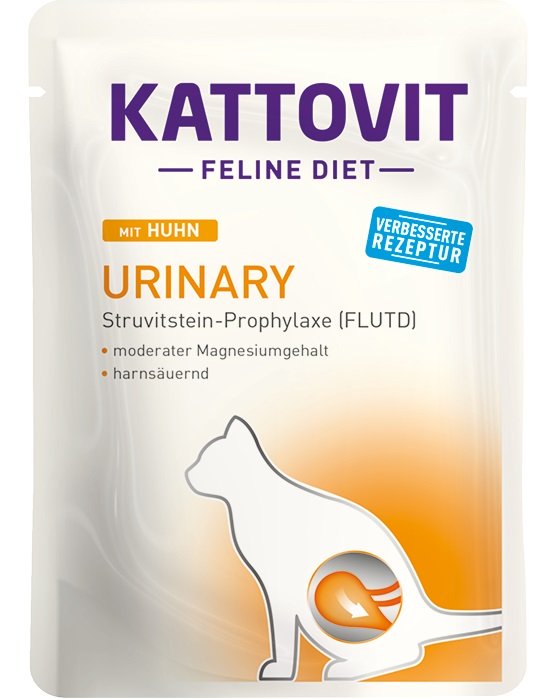 Kattovit Feline Diet - URINARY is ontwikkeld volgens de nieuwste wetenschappelijke inzichten. Ter preventie van urinewegenstenen (Feline lower urinary tract disease – FLUTD) is de samenstelling van het voer zo ontwikkeld dat de pH-waarde van kattenurine onder 6,5 ligt. Kattovit URINARY heeft urinezuurvormende eigenschappen door DL-Methionine en Ammoniumchloride en een laag magnesiumgehalte. Voor verdere preventie zijn een hoge verteerbaarheid en een hoge energiedichtheid van het kattenvoer belangrijk.