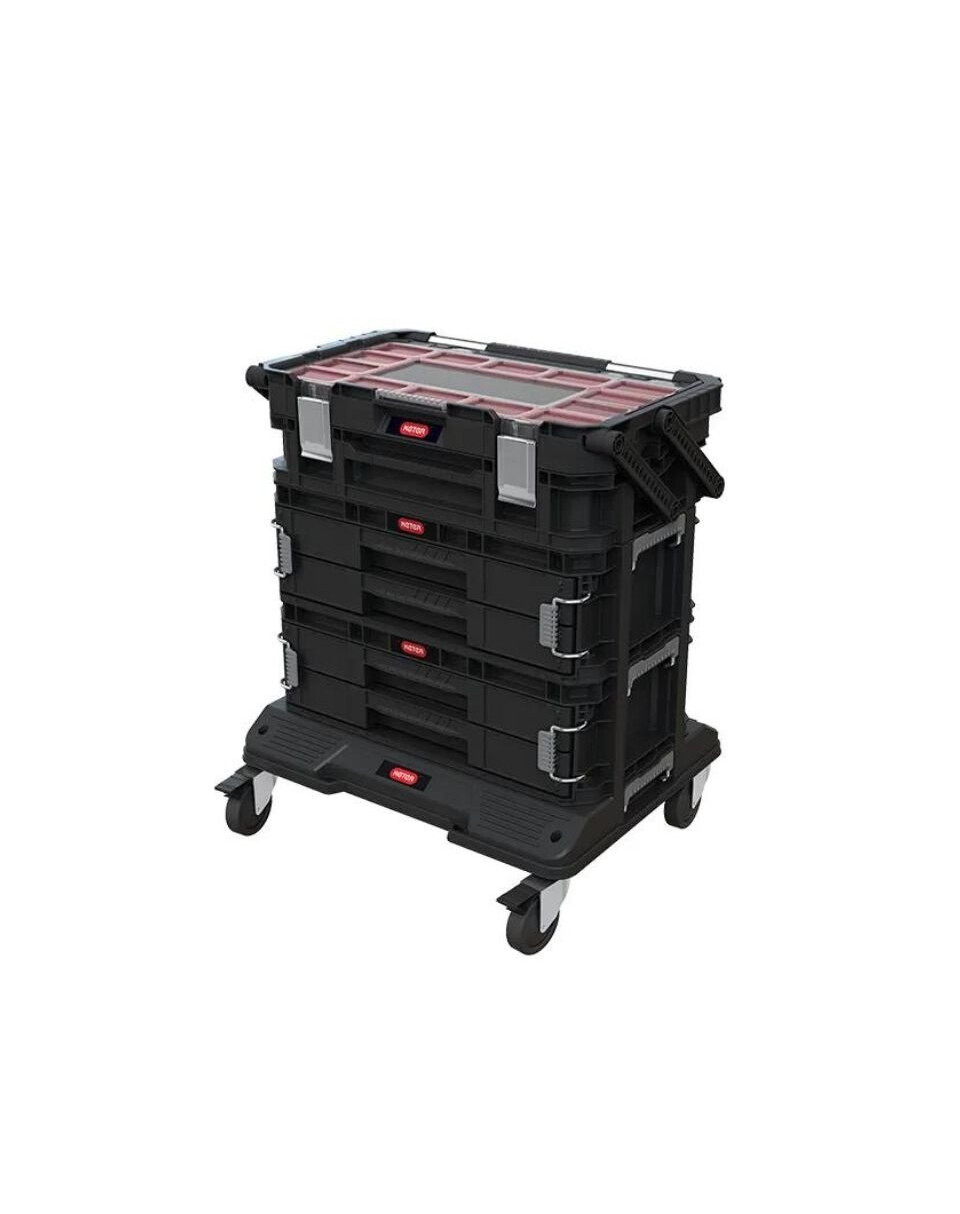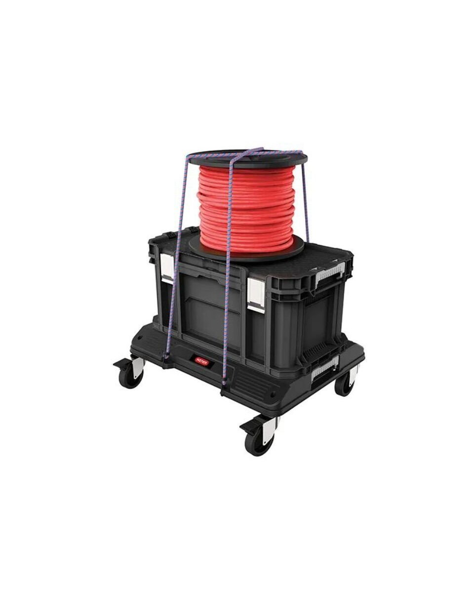 Met de Connect-werkplaatsplank wordt uw doe-het-zelf-uitrusting mobiel en georganiseerd! Het platform is licht en robuust en is ontworpen voor het efficiënte transport van gereedschappen en accessoires met een gewicht tot 100 kg. Of u nu Connect-gereedschapskisten en -organizers opslaat, bouwmaterialen vervoert of 18-liter betonkübel laadt, deze wagen voldoet aan de taak! De rubberen wielen vergemakkelijken het transport en de speciale remmen houden de wielen stevig vast.