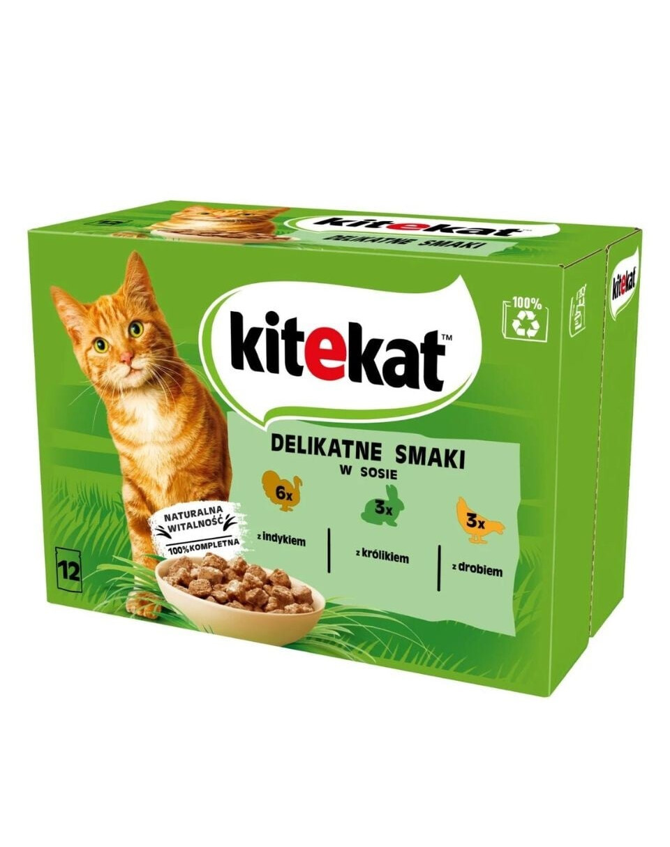 KITEKAT Delicate Flavours is een natte complete voeding voor volwassen katten met Kalkoen, met Konijn, met Gevogelte in Saus.