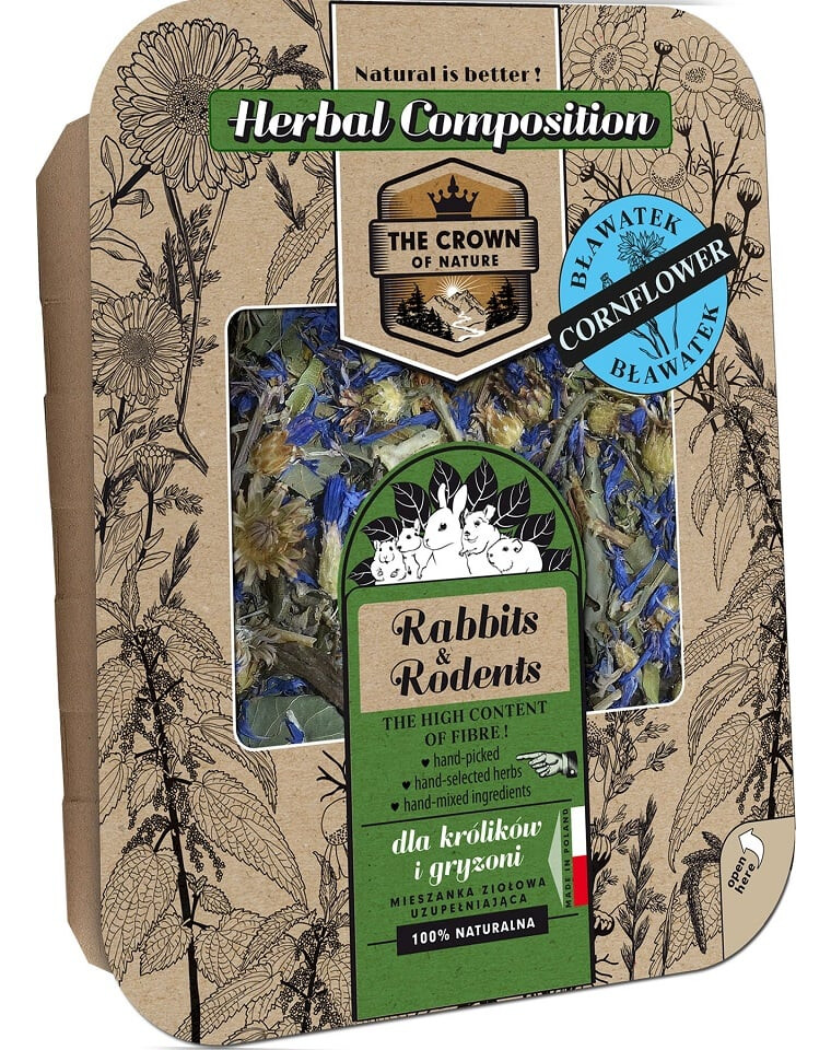 KORONA NATURY Kräutermischung mit Kornblume für Meerschweinchen is een perfecte aanvulling op de voeding van uw cavia. Deze kruidenmix is speciaal ontwikkeld voor cavia's en bevat korenbloemen die de spijsvertering en opname van voedingsstoffen bevorderen. Bovendien dragen de kruiden bij aan de reiniging van het lichaam en de versterking van de immuniteit.