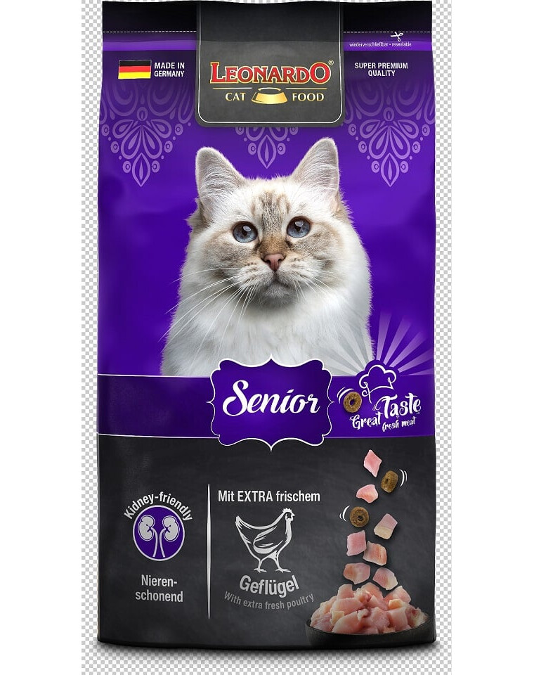 LEONARDO Senior is een niervriendelijk droogvoer voor oudere katten (vanaf 10 jaar).