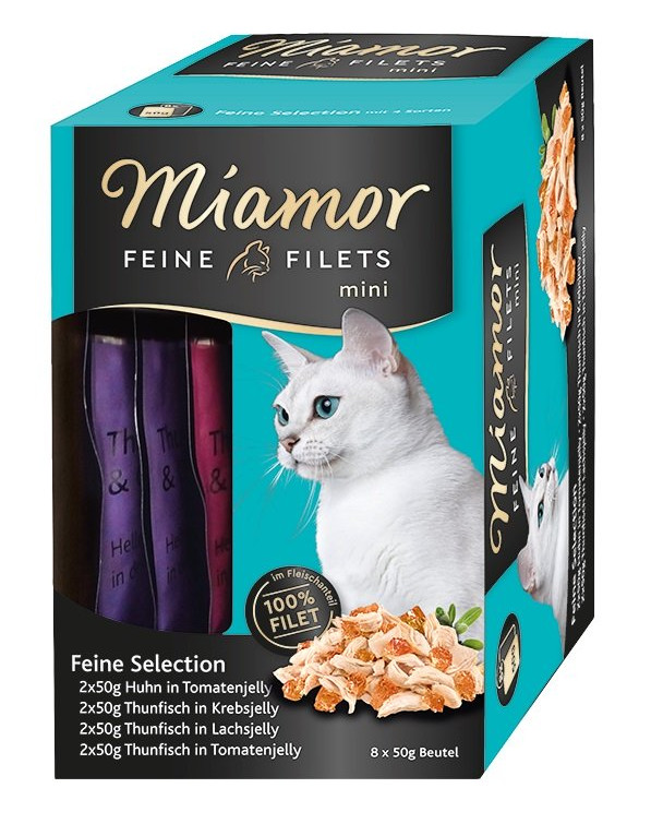 Uitsluitend lichte filetstukjes in zachte gelei, verfijnd met de beste ingrediënten. Hoogwaardige filetspecialiteit - bijzonder licht verteerbaar, voor de veeleisende kat in mini-formaat.
