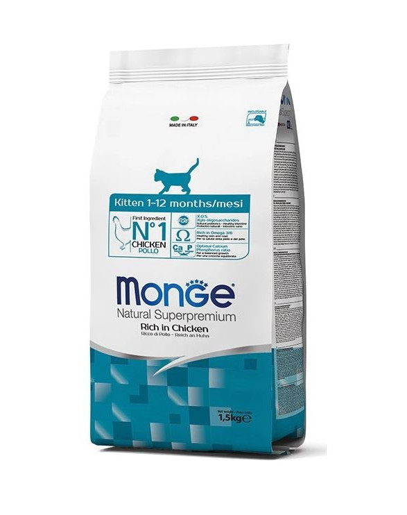 Monge Kitten op kippenvleesbasis is een compleetvoer voor kittens tot 12 maanden.
