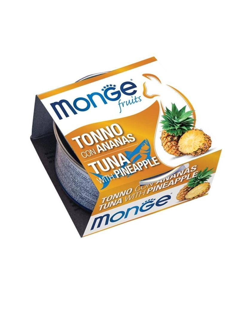 Monge Fruit ist ein Ergänzungsfuttermittel für Katzen mit köstlichem Thunfisch und Ananas, mit einem hohen Nährwert und geringem Fettgehalt. Völlig natürlich, in eigener Sauce, frei von Farb- und Konservierungsstoffen und Gluten. Die gedämpften Zutaten sind reich an Omega-3- und Omega-6-Fettsäuren und machen die Mahlzeit schmackhafter und aromatischer. Die Früchte werden nicht chemisch behandelt und enthalten keine Konservierungs- oder Farbstoffe. Die Ananas ist eine Vitamin-C-Quelle und sondert Bromelain ab, eine Gruppe von proteolytischen Enzymen, die entzündungshemmende Eigenschaften haben.