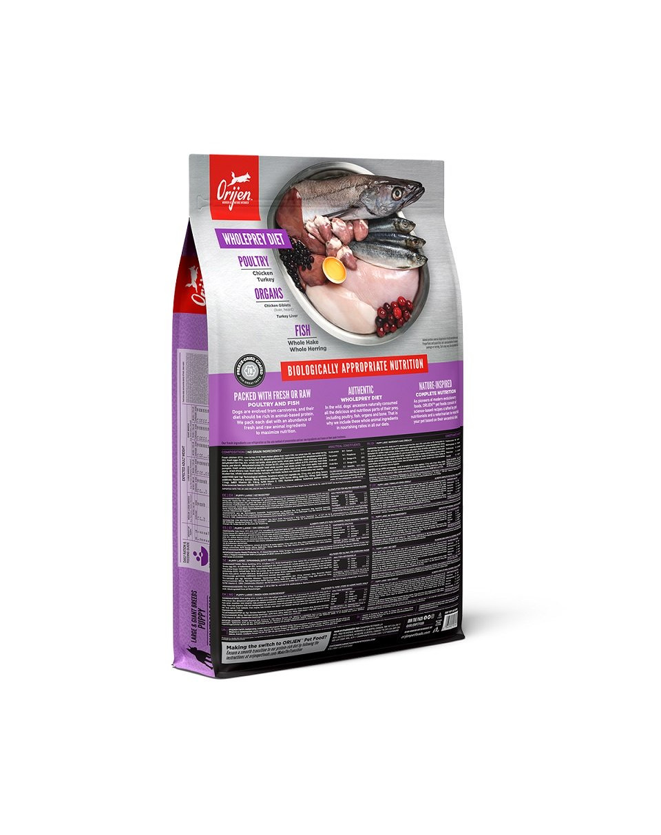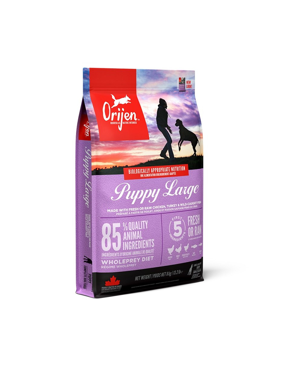 ORIJEN bestaat uit 38% voedzaam eiwit, slechts 20% laag-glycemische koolhydraten en voedt puppy's zoals het aan hun natuurlijke behoeften voldoet.