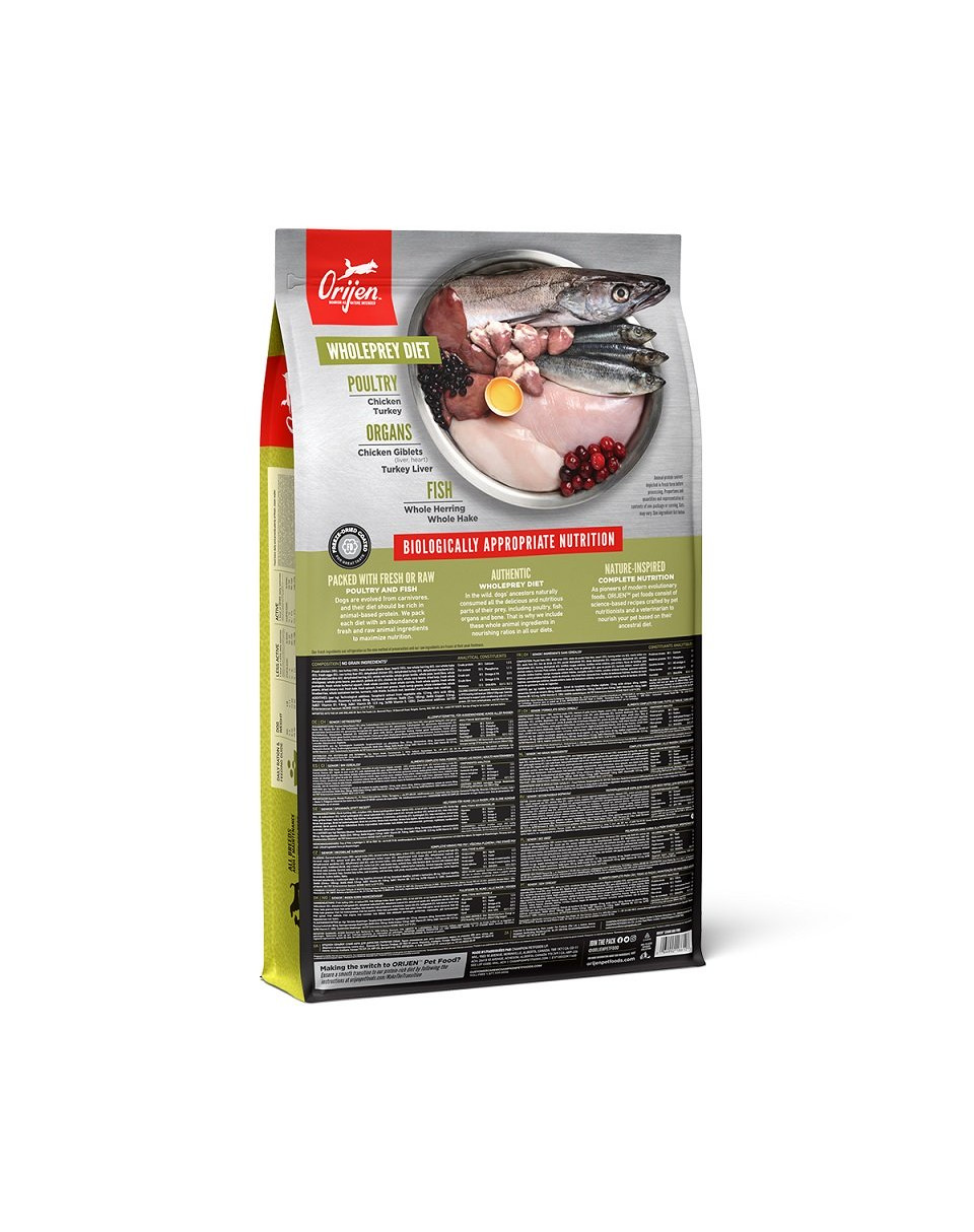 ORIJEN bestaat uit 42% voedzaam eiwit en slechts 17% koolhydraten en voedt oudere honden van alle rassen zoals het hun natuurlijke behoeften vereist.