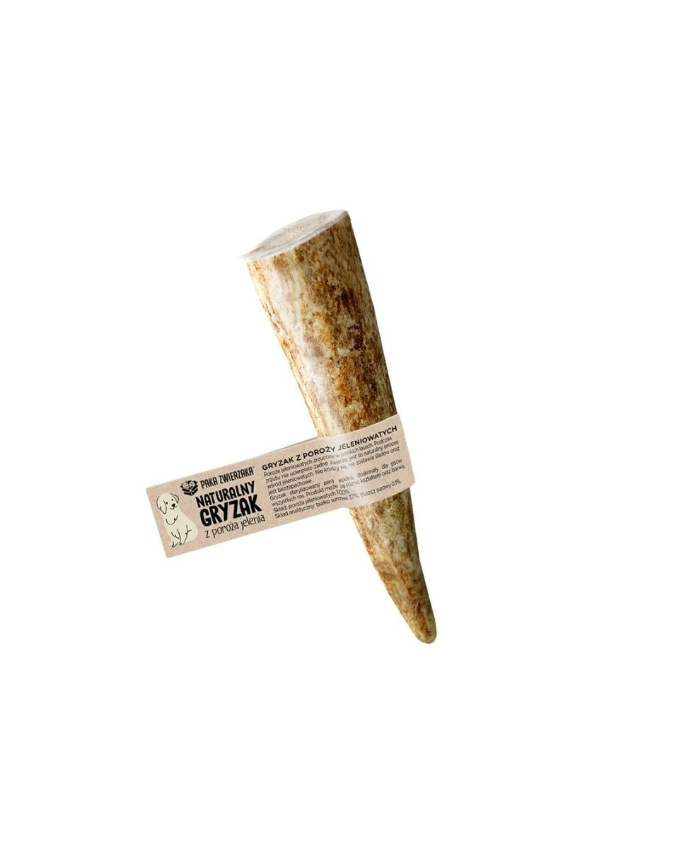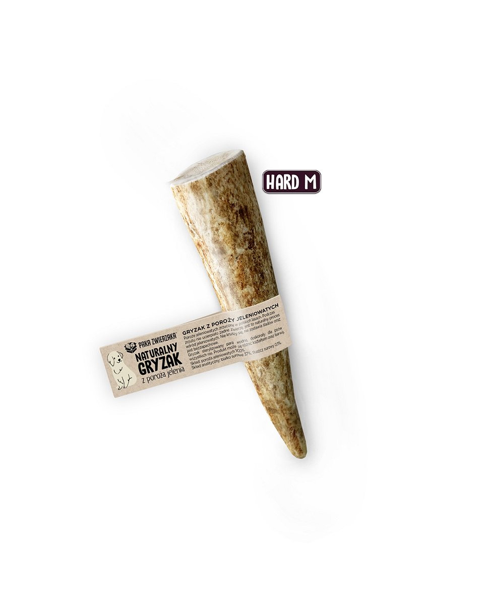 Een natuurlijke kauwsnack voor honden ouder dan 8 maanden. De harde versie van het hertengeweiht wordt aanbevolen voor honden met sterke kaken van middelgrote rassen. Het kauwproduct bestaat uit hele geweistukken, die urenlang kauwen en bijten mogelijk maken.