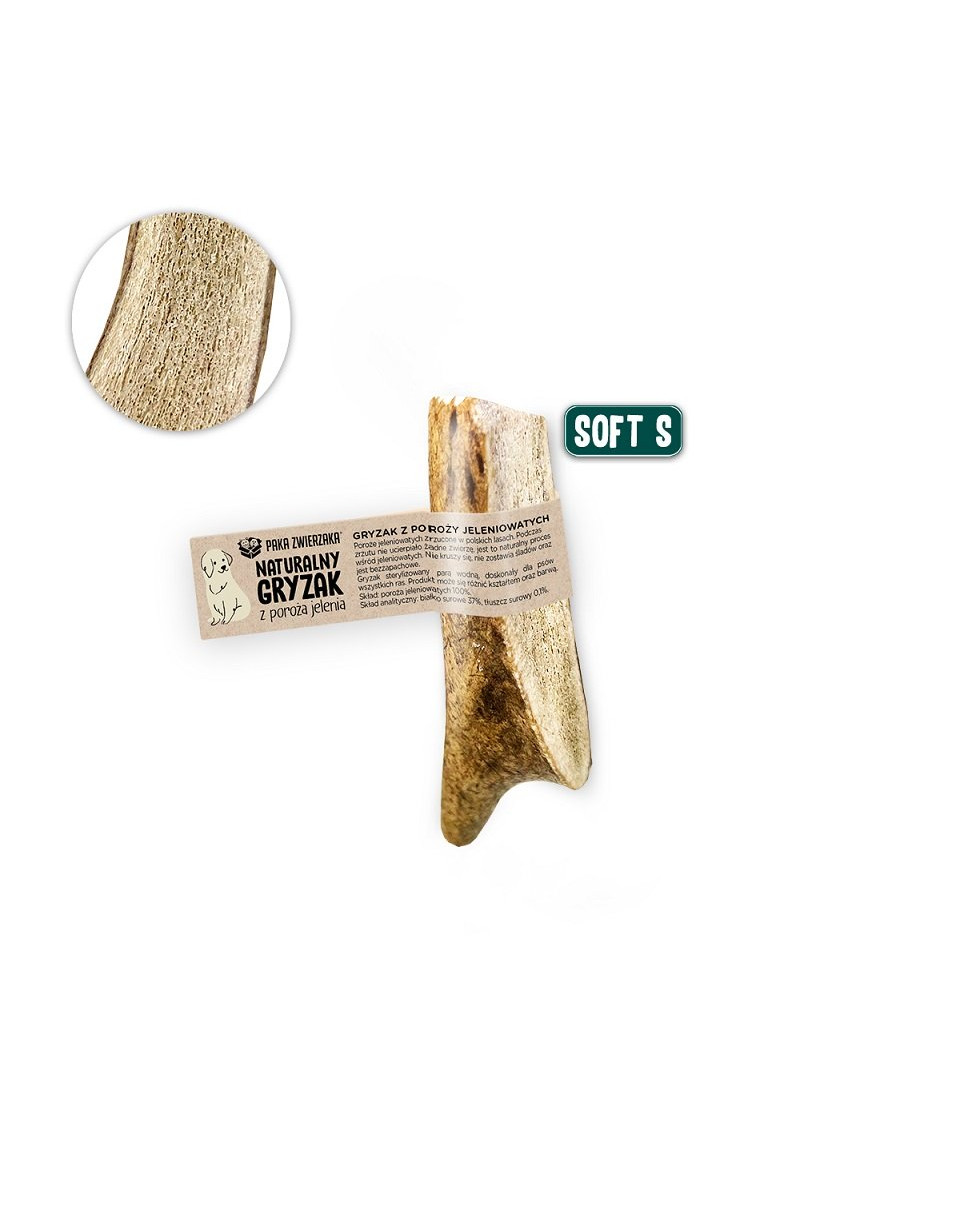 Een natuurlijke kauwsnack voor honden ouder dan 8 maanden. De zachte versie van het hertengeweiht wordt aanbevolen voor honden met een gevoeliger kaak.