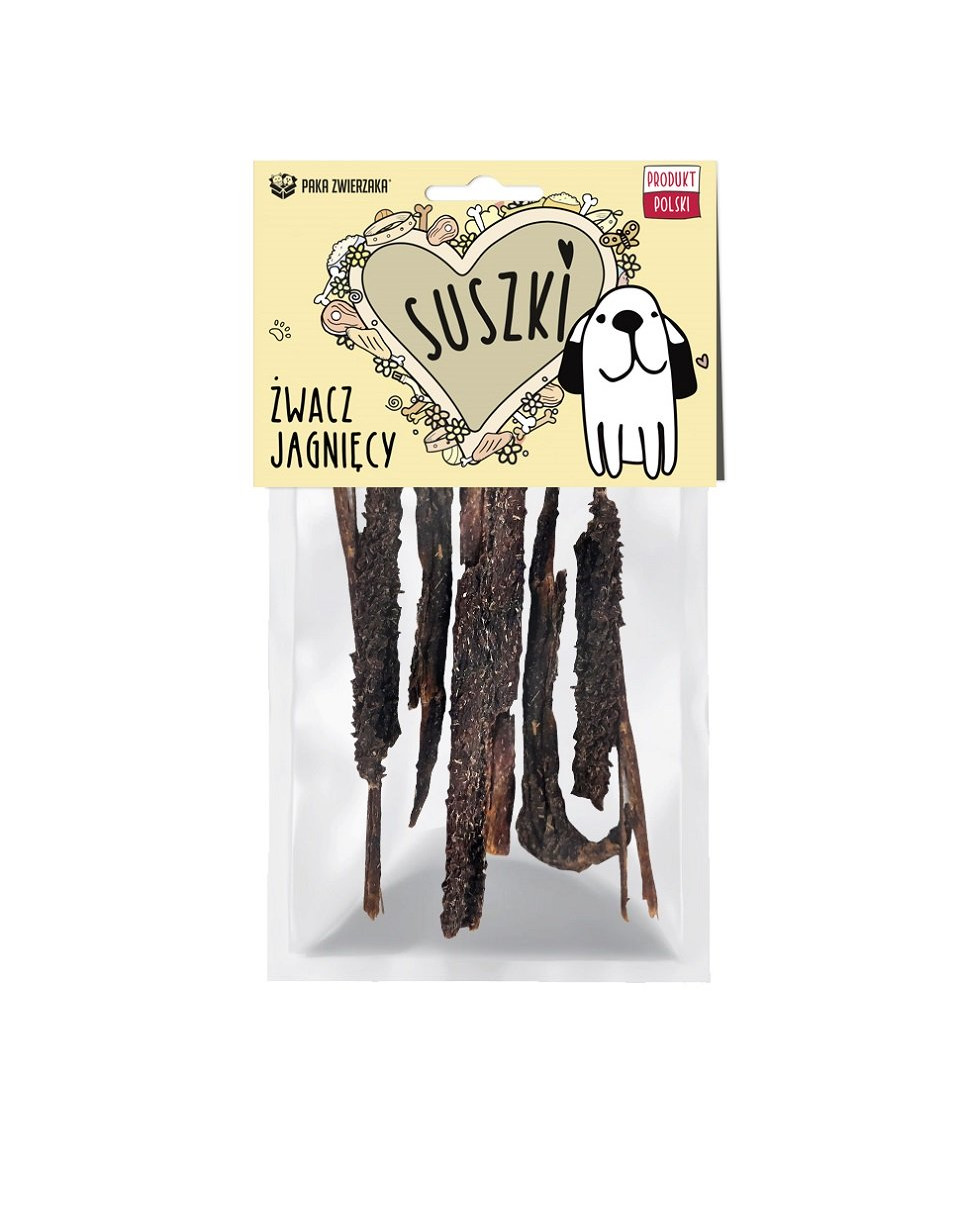 100% natuurlijk gedroogd lamsvlees om op te kauwen voor honden van alle leeftijden, inclusief puppy's. De kauwmateriaal heeft een natuurlijke geur en een unieke smaak. De zorgvuldige en langzame droging van de lekkernij zorgt ervoor dat de waardevolle voedingsstoffen behouden blijven. Dankzij het thermische pasteurisatieproces is het hoogwaardige lamsrauwmateriaal vrij van bacteriën en virussen, en krijgt de hond alleen het beste product.