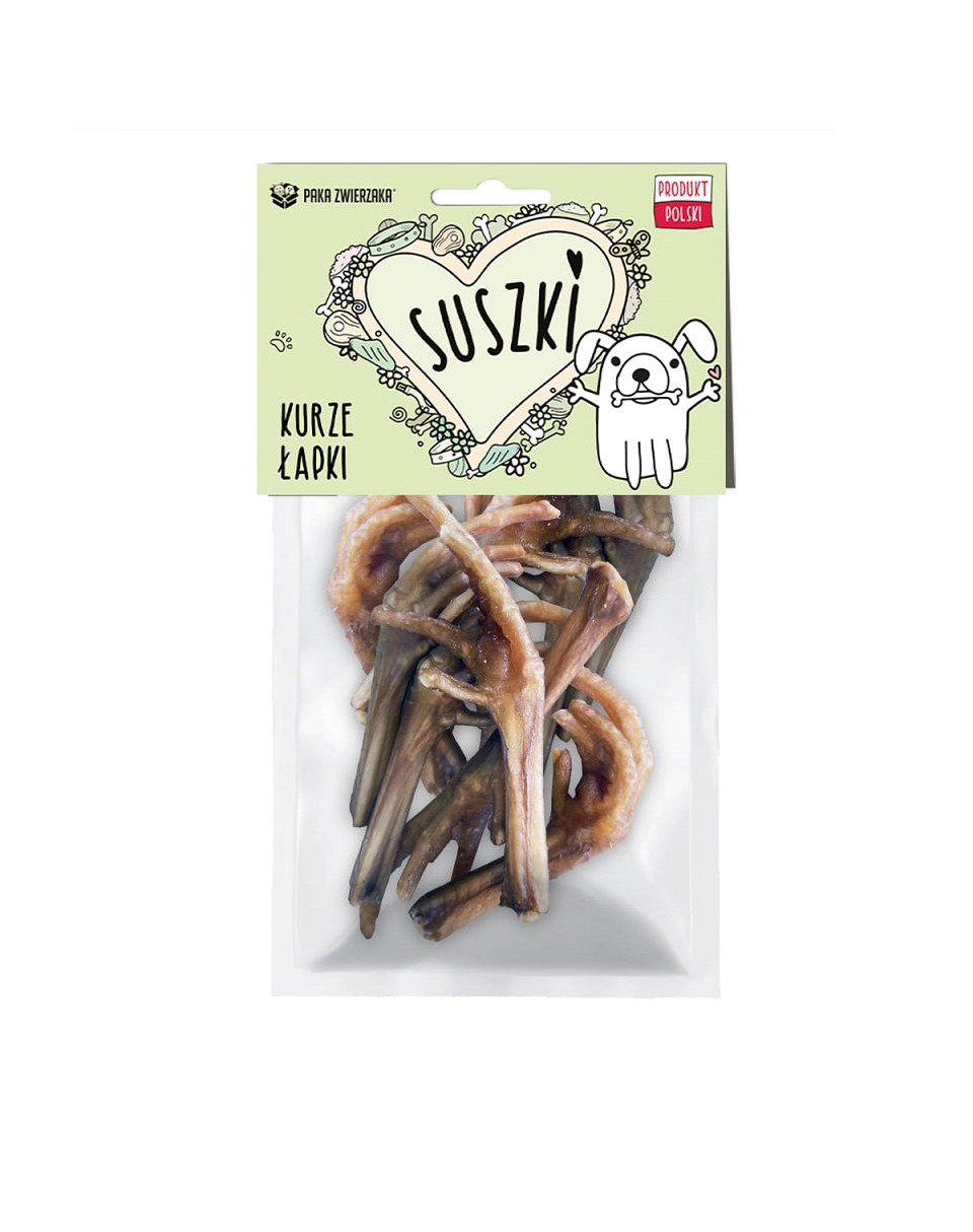 100% natuurlijke gedroogde kippenpoten voor honden van alle leeftijden, inclusief puppy's. De kauwproducten hebben een natuurlijk aroma en een unieke smaak. De zorgvuldige en langzame droging van de lekkernij zorgt ervoor dat de waardevolle voedingsstoffen behouden blijven. Dankzij het thermische pasteurisatieproces is de hoogwaardige gevogeltegrondstof vrij van bacteriën en virussen en krijgt uw hond alleen het beste product.