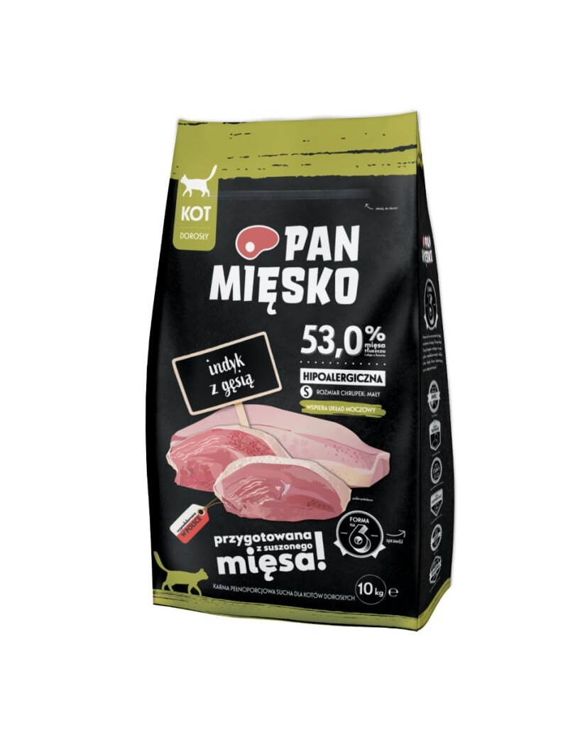 Leer het hypoallergene kattenvoer Pan Mięsko kennen. Ze onderscheiden zich door zorgvuldig geselecteerd vlees met sappige Poolse appels, gezonde groenten en waardevolle voedingsstoffen die de gezondheid en conditie van uw kat positief zullen beïnvloeden. Onze recepten zijn ontwikkeld door specialisten om uw viervoetige vriend te voorzien van precies wat hij nodig heeft. Uw kat verdient alleen het beste.