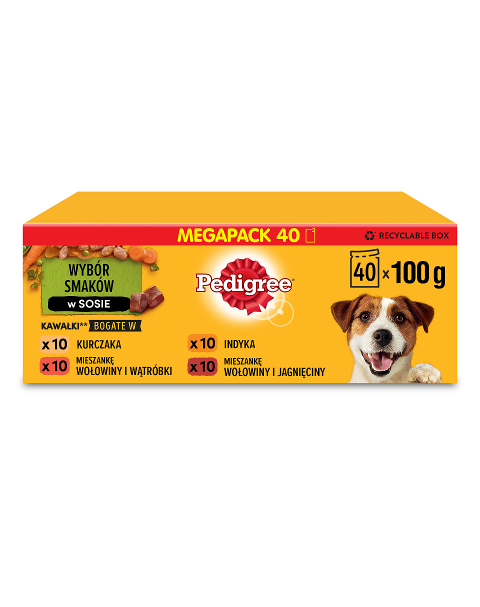 Honden zijn er dol op: Het Pedigree natvoer in saus is een complete, uitgebalanceerde maaltijd die gezond is en heerlijk smaakt