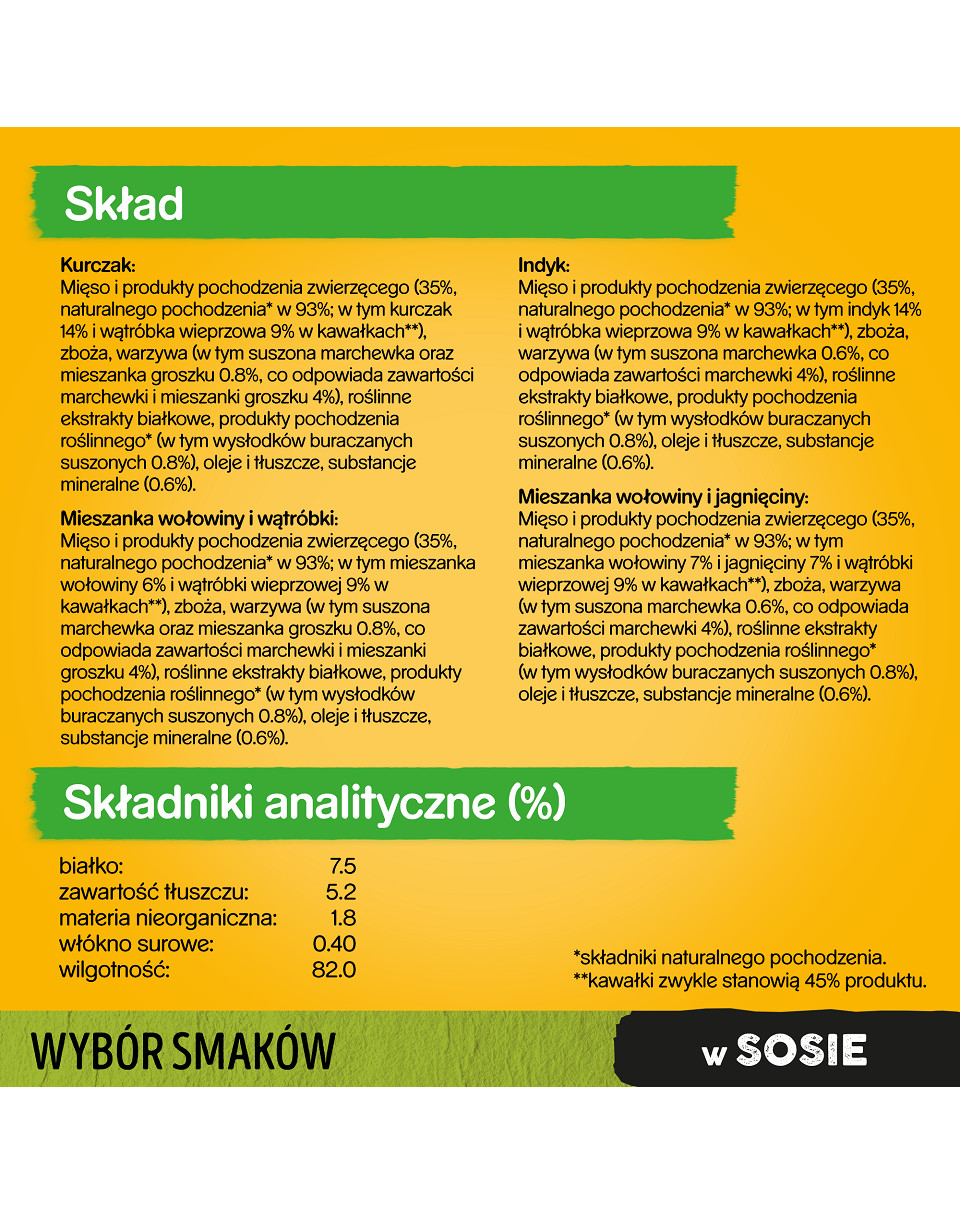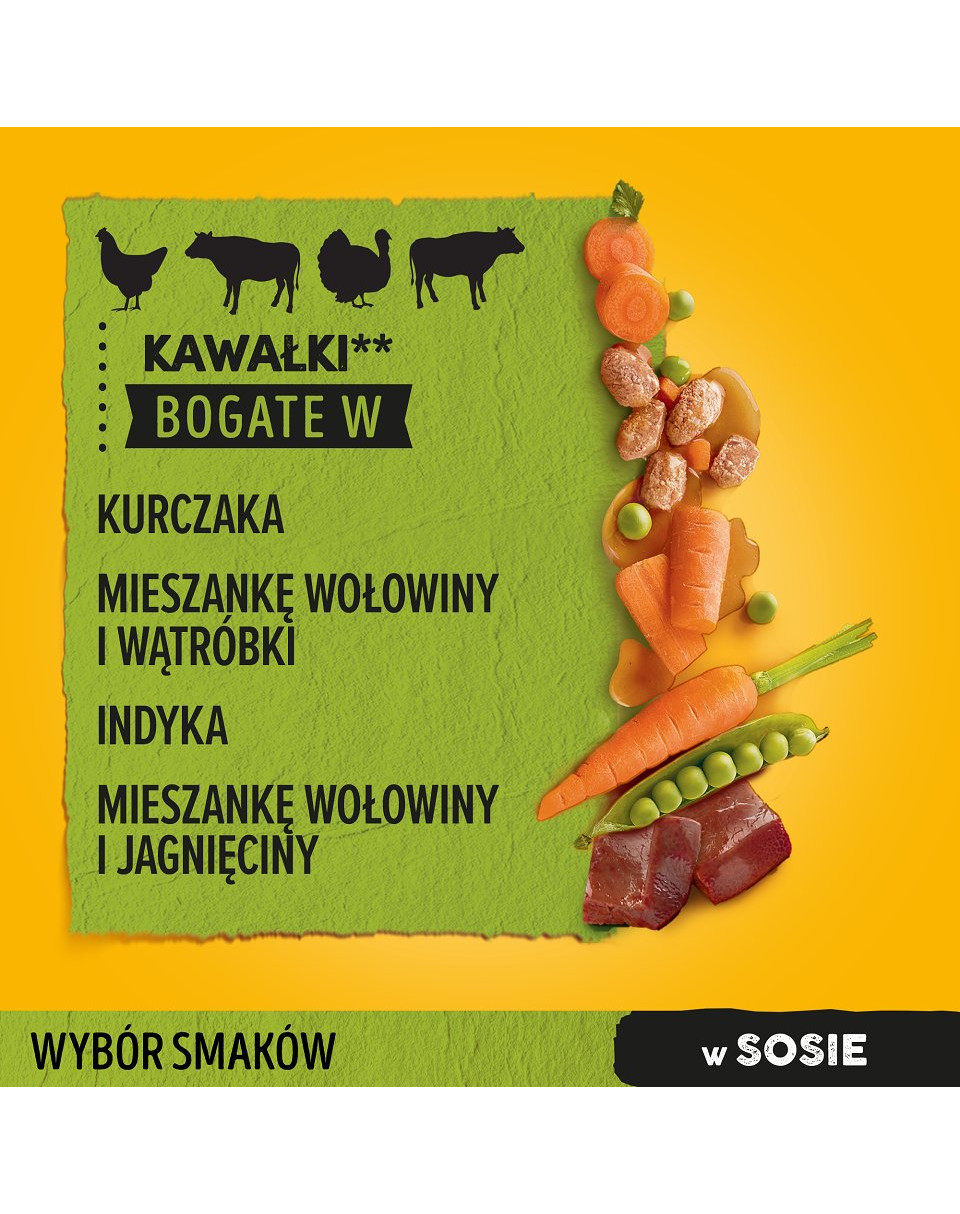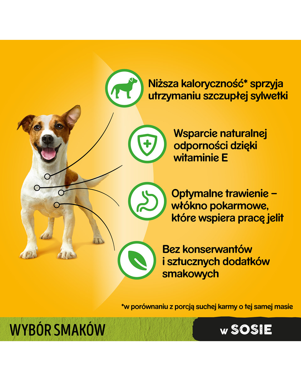 Het Pedigree natvoer bevat Omega-6 vetzuren voor een gezonde vacht, calcium voor sterke botten, vezels voor een goede spijsvertering & vitamines voor een intact immuunsysteem