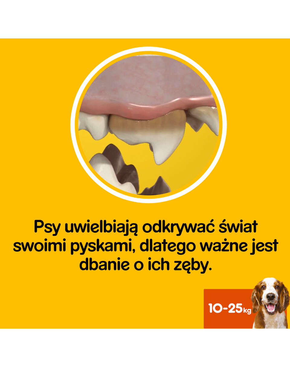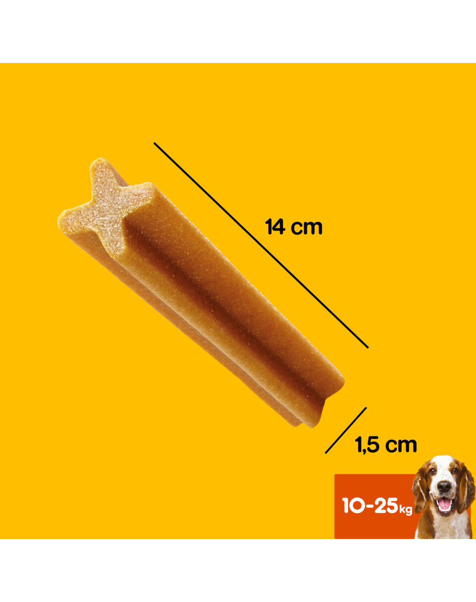 PEDIGREE DentaStix Daily Oral Care is een aanvullend diervoeder voor honden vanaf 4 maanden, dat bijdraagt aan het behoud van gezond tandvlees en tanden. Door de speciaal ontwikkelde, langwerpige vorm bereikt u ook moeilijk bereikbare tanden en vermindert u de tandsteenvorming met tot 80 %. Deze grootte is ontworpen voor honden met een gewicht van 10 tot 25 kg. Door uw hond PEDIGREE DentaStix te geven, maakt u hem gelukkig en zorgt u voor zijn gezondheid en vitaliteit.