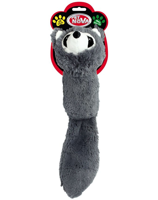 Pluche Waschbär speelgoed voor honden van alle leeftijden en maten. Gemaakt van aangenaam, hoogwaardig materiaal, perfect om te knuffelen, als hoofdsteun tijdens het ontspannen en voor plezier. Ingebouwde fluit stimuleert de interesse in het speelgoed en de activiteit. Uw hond zal het zeker leuk vinden! De totale lengte van het speelgoed is 41 cm.