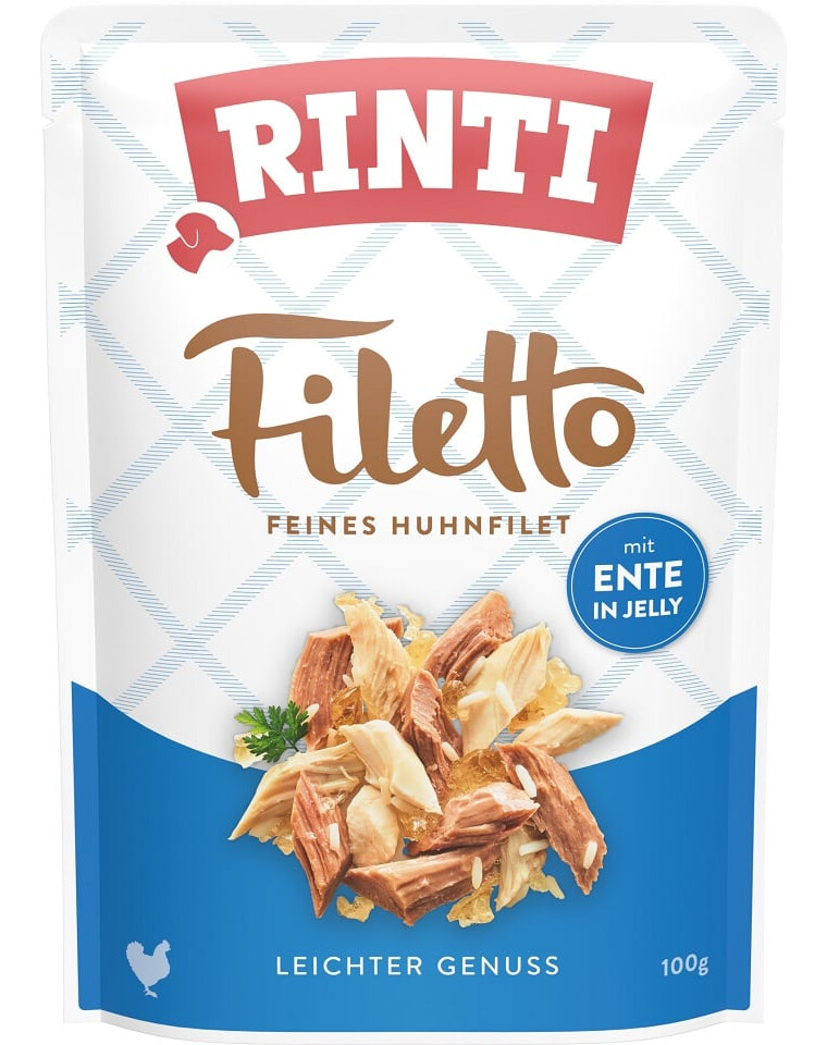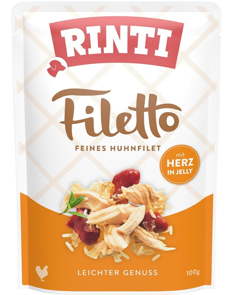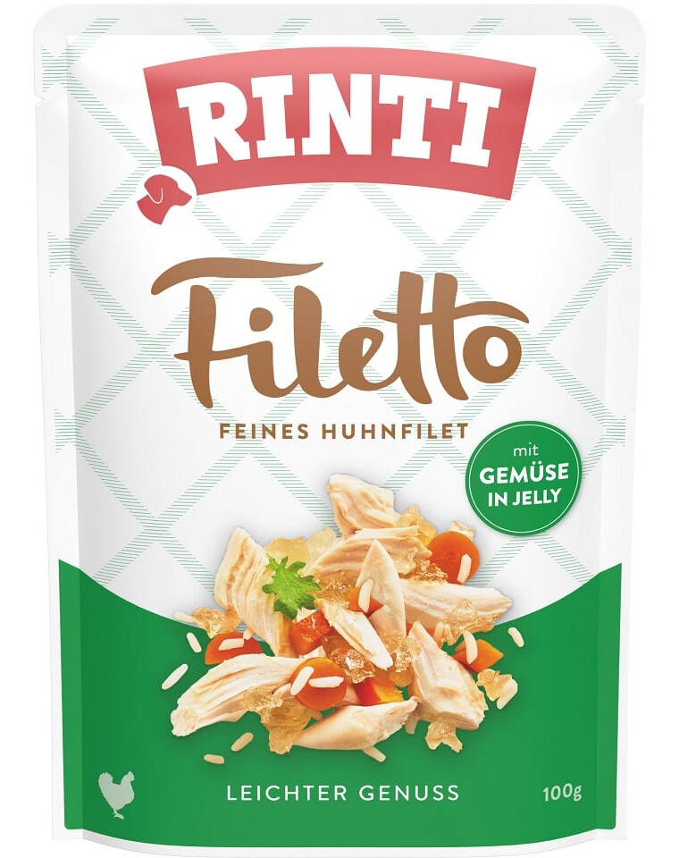 RINTI Filetto is een aanvullend diervoeder met kip en groenten in een heerlijke gelei voor volwassen honden.