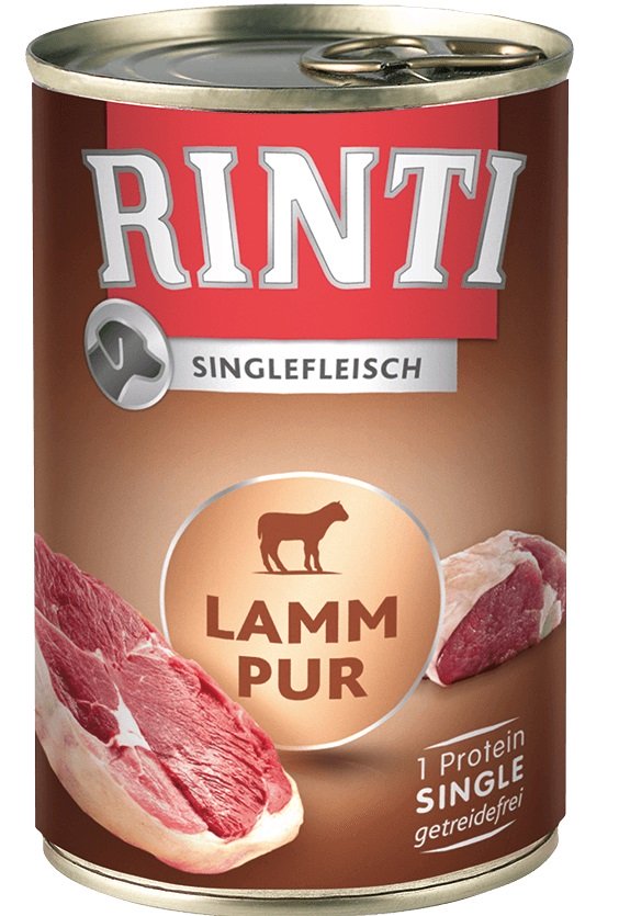 - unieke samenstelling van vlees en organen van één diersoort. Rinti Singlefleisch is bijzonder geschikt voor een evenwichtige, eiwitrijke voeding zonder toegevoegde koolhydraten en graanvrij, met slechts één eiwitbron. Dit kan ook het risico op voedselallergieën en intoleranties verminderen. Doordat in elke variant uitsluitend één diersoort wordt gebruikt, is een bijzonder gevarieerde voeding over alle varianten gewaarborgd. - voor gevoelige / kieskeurige honden. RINTI SINGLEFLEISCH uitsluitend met 100% LAM PUR in het vleespercentage.