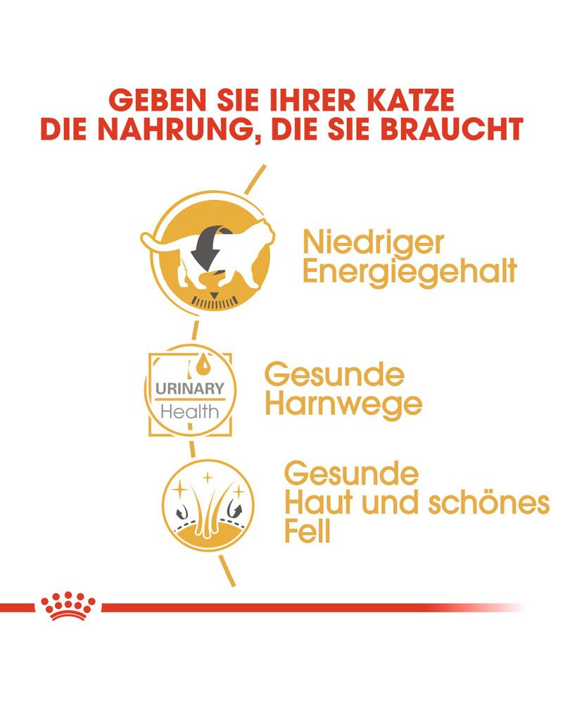 ROYAL CANIN British Shorthair Adult in saus bevat een gematigd energiegehalte en een aangepast vetgehalte (3,2 %) voor een effectief gewichtsbeheer van de BKH – zo wordt de kans op ongewenste gewichtstoename verminderd.