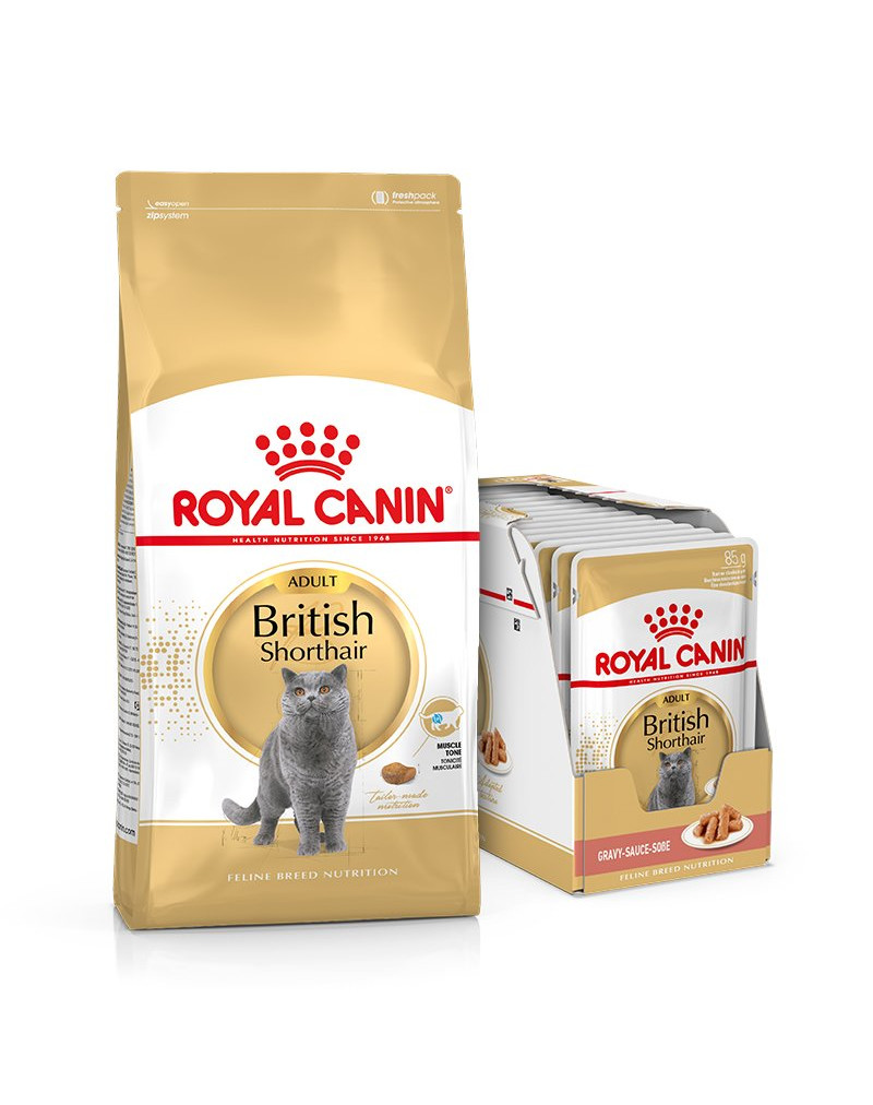 ROYAL CANIN British Shorthair Katzenfutter trocken für Britisch Kurzhaar 10 kg + nass für Britisch Kurzhaar 12x85 g