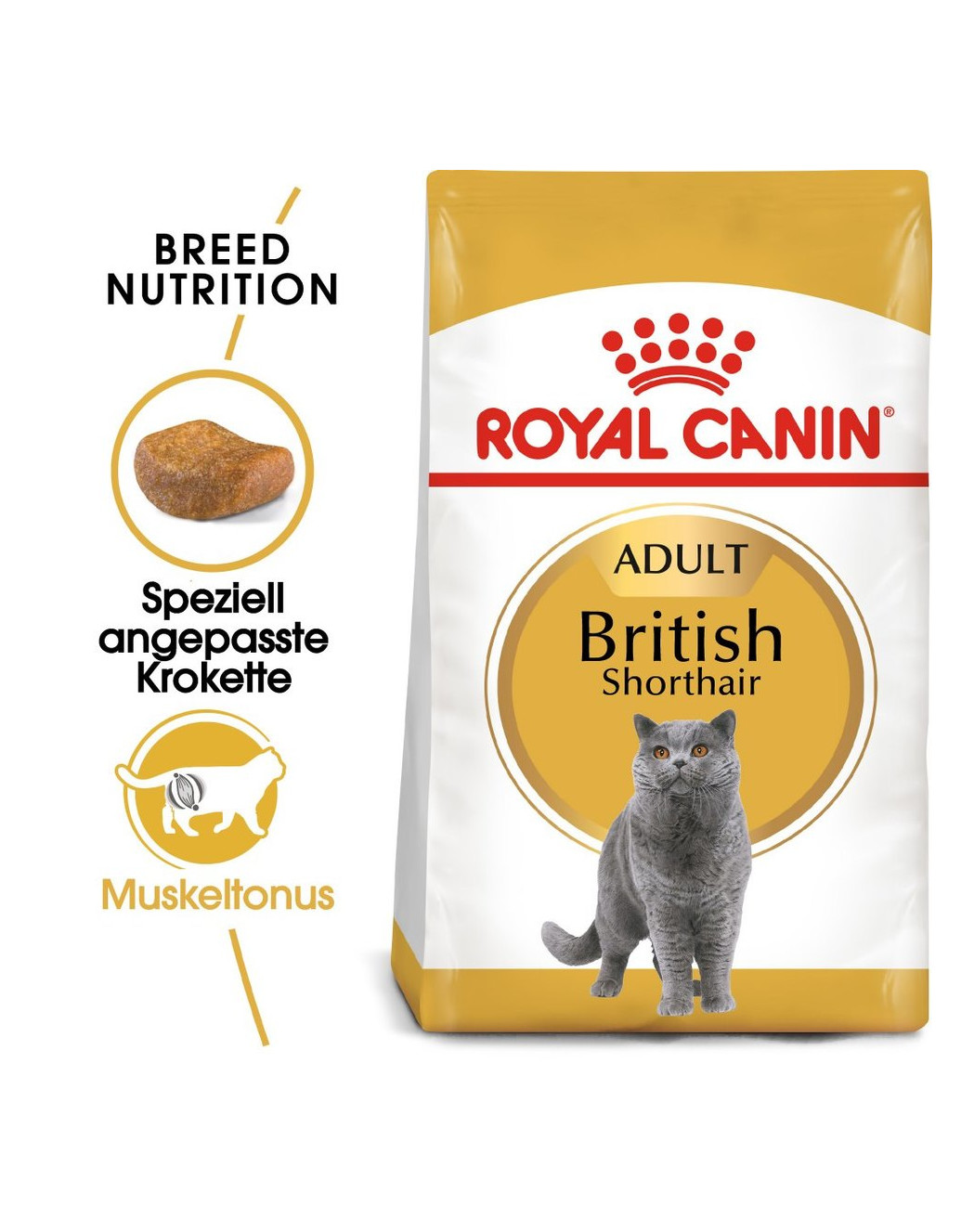 ROYAL CANIN British Shorthair Adult ist speziell auf die Ernährungsbedürfnisse von Britisch Kurzhaar Katzen abgestimmt. Aufgrund des stämmigen Körperbaus der BKH wurde der Proteingehalt des ROYAL CANIN British Shorthair Adult Futters so angepasst, dass es zum Erhalt der Muskelmasse der Britisch Kurzhaar Katze beiträgt. Das Futter ist außerdem mit L-Carnitin angereichert, einem Nährstoff, der den Fettstoffwechsel unterstützt.