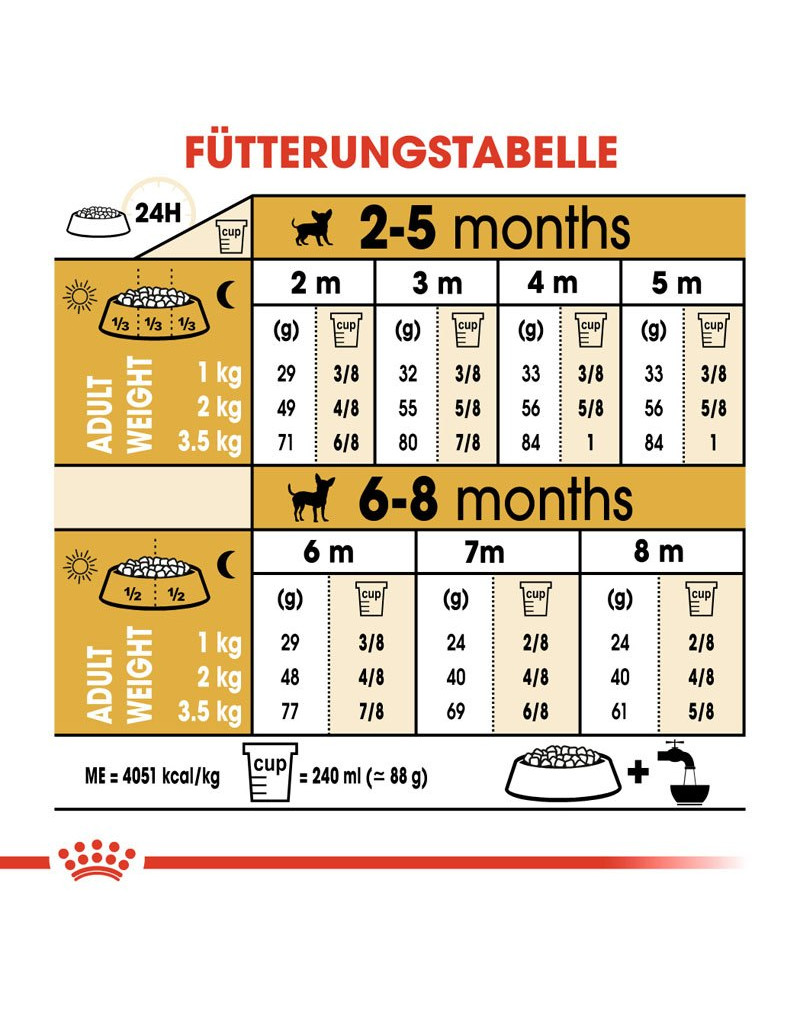 De groei is een belangrijke fase in het leven van een puppy - het is de tijd van significante lichamelijke veranderingen en nieuwe ontdekkingen. Tijdens deze sleutelperiode ontwikkelt het immuunsysteem van een puppy zich geleidelijk. ROYAL CANIN Chihuahua Puppy is geschikt voor Chihuahuas tot 8 maanden oud en is speciaal ontwikkeld voor de bijzondere behoeften van Chihuahua puppy's.