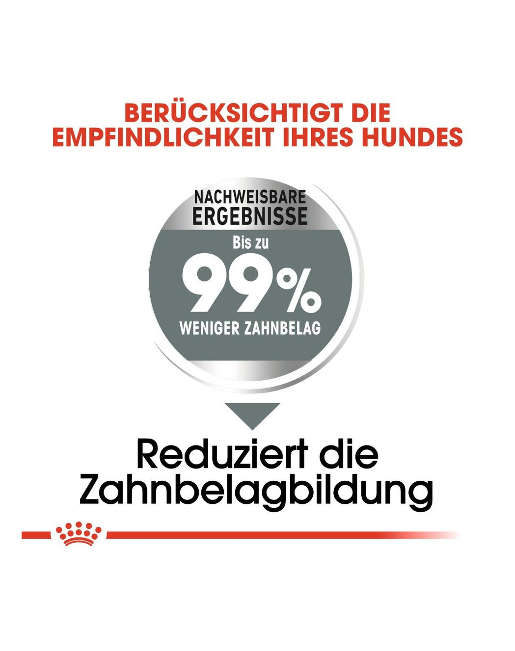 Unser Qualitätsversprechen untermauern wir mit wissenschaftlichen Beweisen: ROYAL CANIN Dental Care Mini reduzierte in internen Studien nachweislich die Zahnbelagneubildung um bis zu 99%. ROYAL CANIN Dental Care Mini trägt somit nachweislich effektiv zur Bekämpfung von Zahnstein bei.