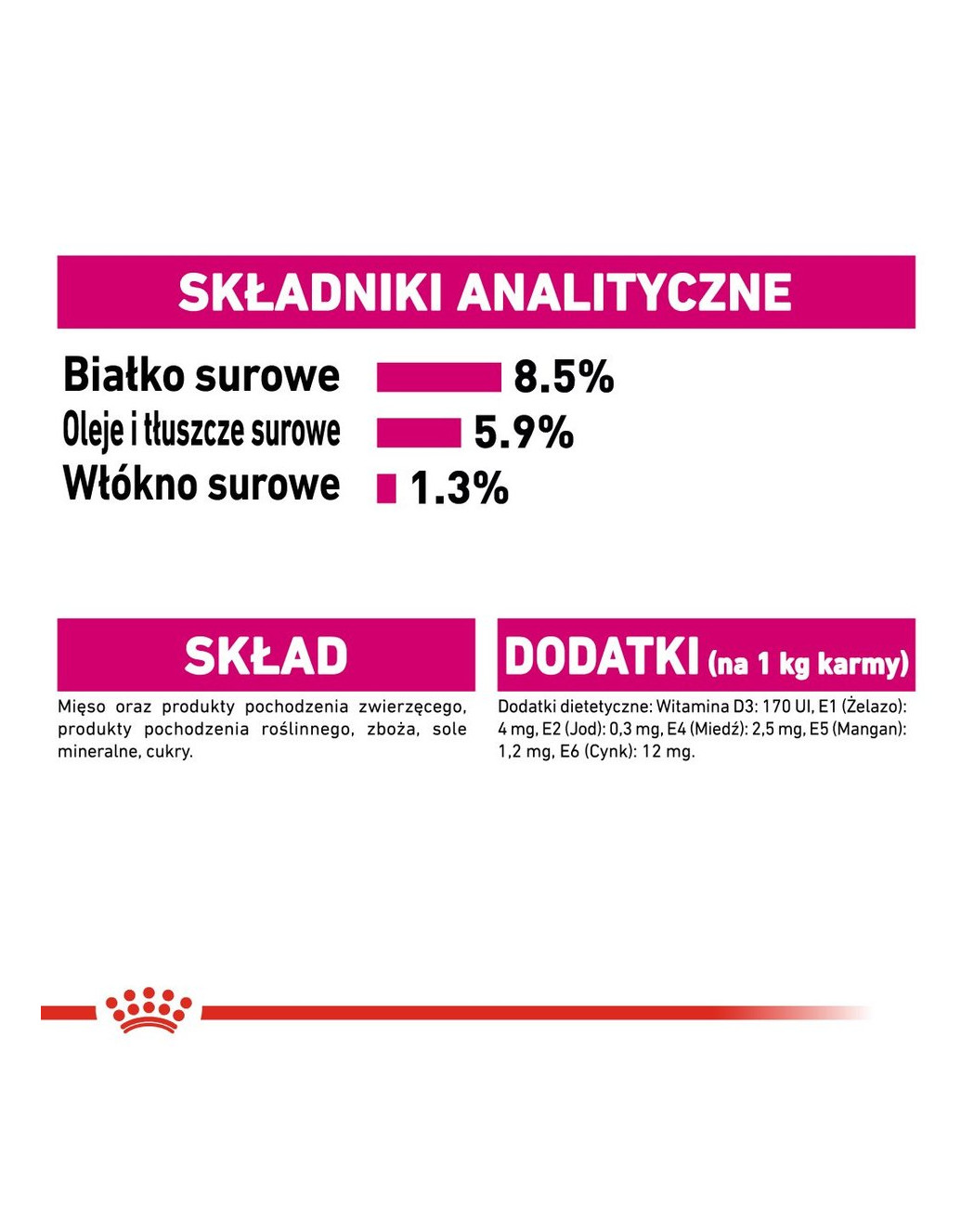 Eiwithoud 8,5%, Vetgehalte 5,9%, Ruwe vezel 1,3%, Ruw as 1,7%, NFE 3,1% Vochtgehalte 79,5%