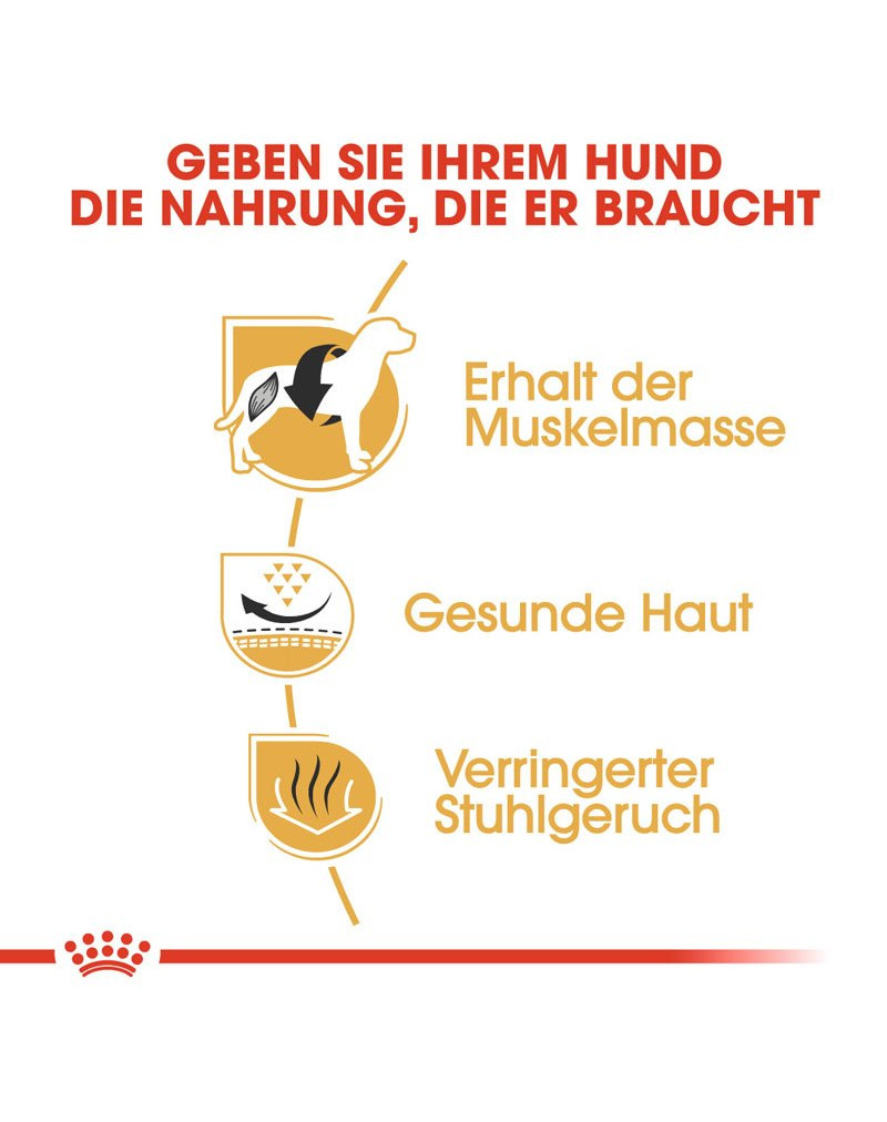 Französische Bulldoggen sind wahre Kraftpakete. Diese Hunde sind sehr aufgeweckt und sportlich und gewissermaßen zu jedem Zeitpunkt in Bewegung. Die Französische Bulldogge benötigt regelmäßige körperliche Bewegung, um ihre kräftigen Muskeln zu erhalten. Dies bedeutet, dass die kleine Dogge eine an ihre intensive körperliche Aktivität angepasste Ernährung benötigt. Dank einer speziellen Zusammenstellung aus einem angepassten Proteingehalt und der Zugabe von L-Carnitin trägt ROYAL CANIN French Bulldog Adult zum Erhalt der Muskelmasse bei. Darüber hinaus fördert ROYAL CANIN French Bulldog Adult die Aufrechterhaltung einer optimalen Verdauungsgesundheit und unterstützt das Gleichgewicht der Darmflora. Dadurch wiederum können übermäßige Blähungen und der Stuhlgeruch reduziert werden.