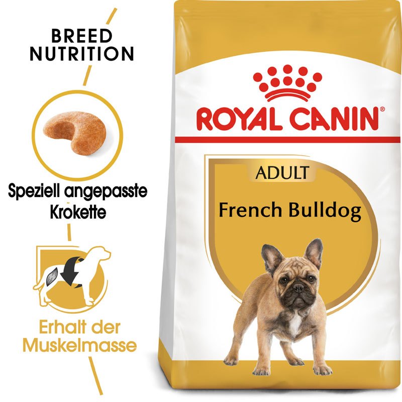 Die Französische Bulldogge ist eine kleine Rasse mit einer ausgeprägten Muskelmasse, einem kompakten Körperbau und festen Knochen. Diese starken Hunde sind für gewöhnlich aufmerksam, aktiv und intelligent. Da jede Rasse ihre ganz eigenen Bedürfnisse aufweist, sollte die Ernährung den jeweiligen einzigartigen Lebensstil unterstützen und ihre optimale Gesundheit fördern. ROYAL CANIN French Bulldog Adult ist für Französische Bulldoggen ab dem 12. Monat geeignet und wurde speziell an die Bedürfnisse ausgewachsener Französische Bulldoggen angepasst.