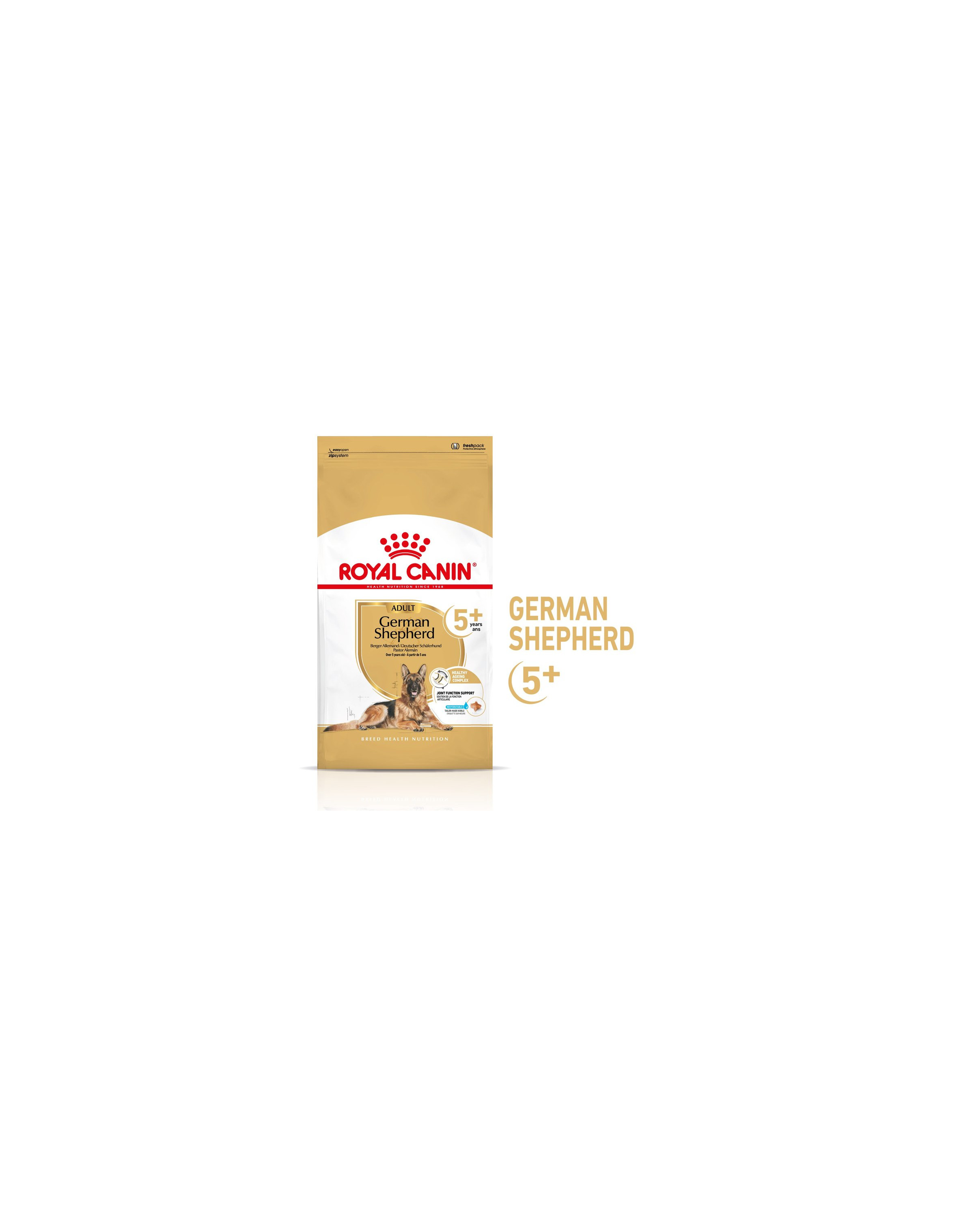 ROYAL CANIN® German Shepherd Adult 5+ voer voor volwassen Duitse herders ouder dan 5 jaar is speciaal ontwikkeld voor de behoeften van volwassen honden.